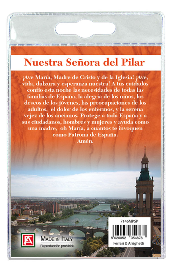 Il Portachiavi è confezionato in un blister con all'interno un immagine della Madonna del Pilar sul cui retro è stampata una preghiera a lei dedicata *(in spagnolo).