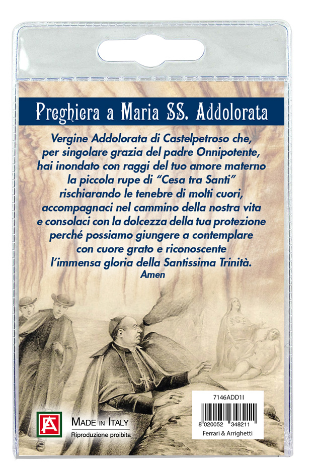 Il Portachiavi è confezionato in un blister con all'interno un immagine della Madonna sul cui retro è stampata una preghiera dedicata alla Vergine Maria.