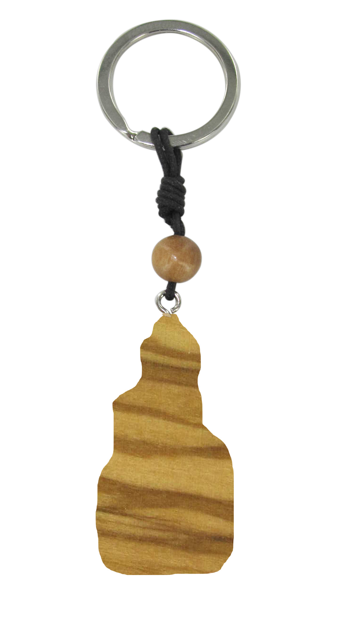 Portachiavi sagomato in legno d'ulivo con grano e con l'immagine serigrafata della Madonna di Gibilmanna.