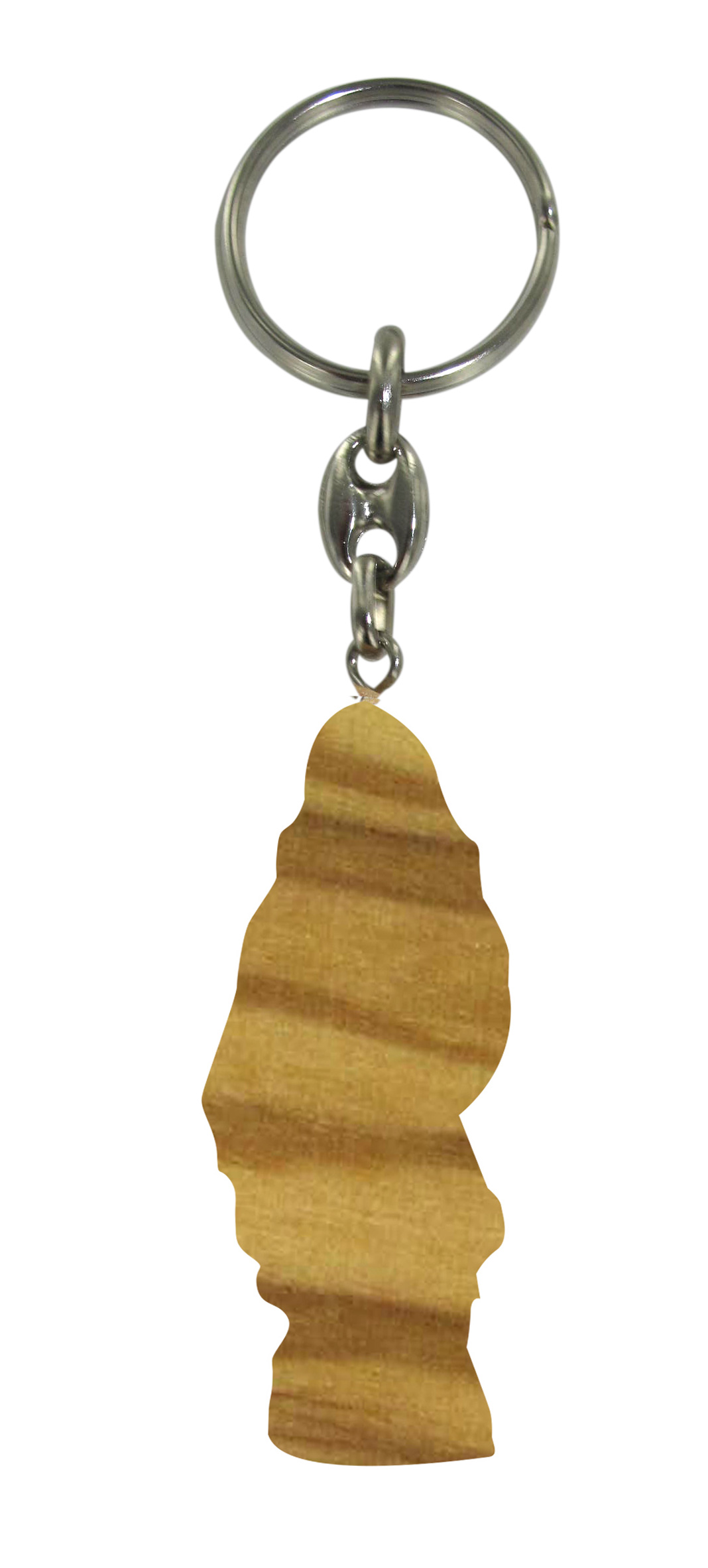 Portachiavi sagomato in legno d'ulivo con l'immagine serigrafata di Santa Chiara.