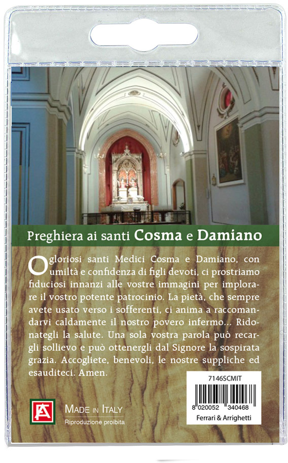 Portachiavi Santi Cosma e Damiano (ad Oria) con decina in ulivo e preghiera in italiano