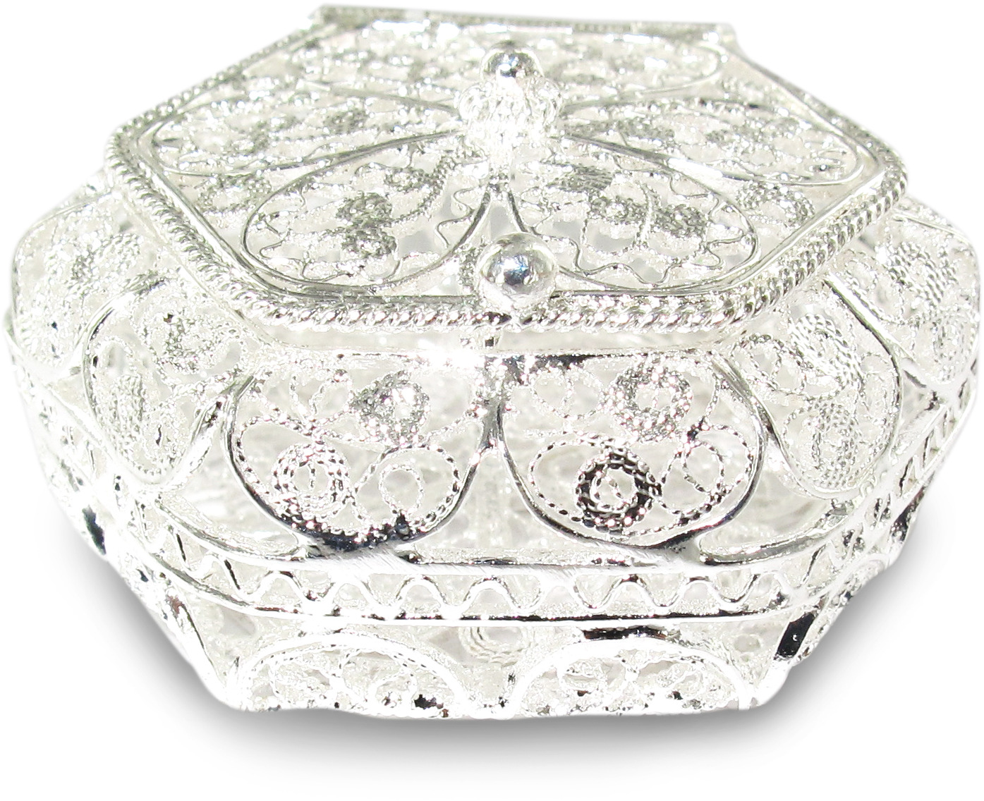 Scatolina a forma esagonale in filigrana e argento 925.