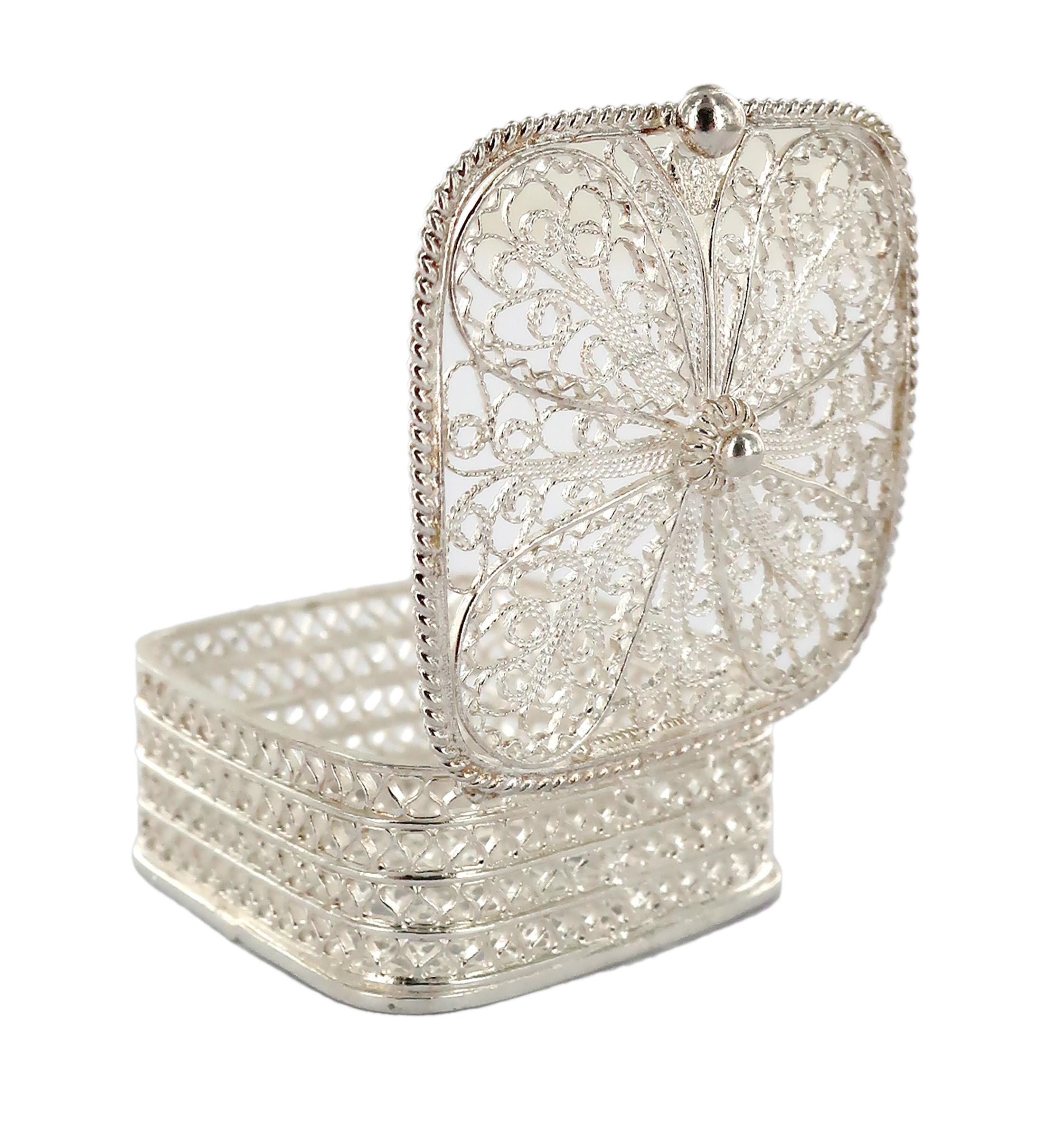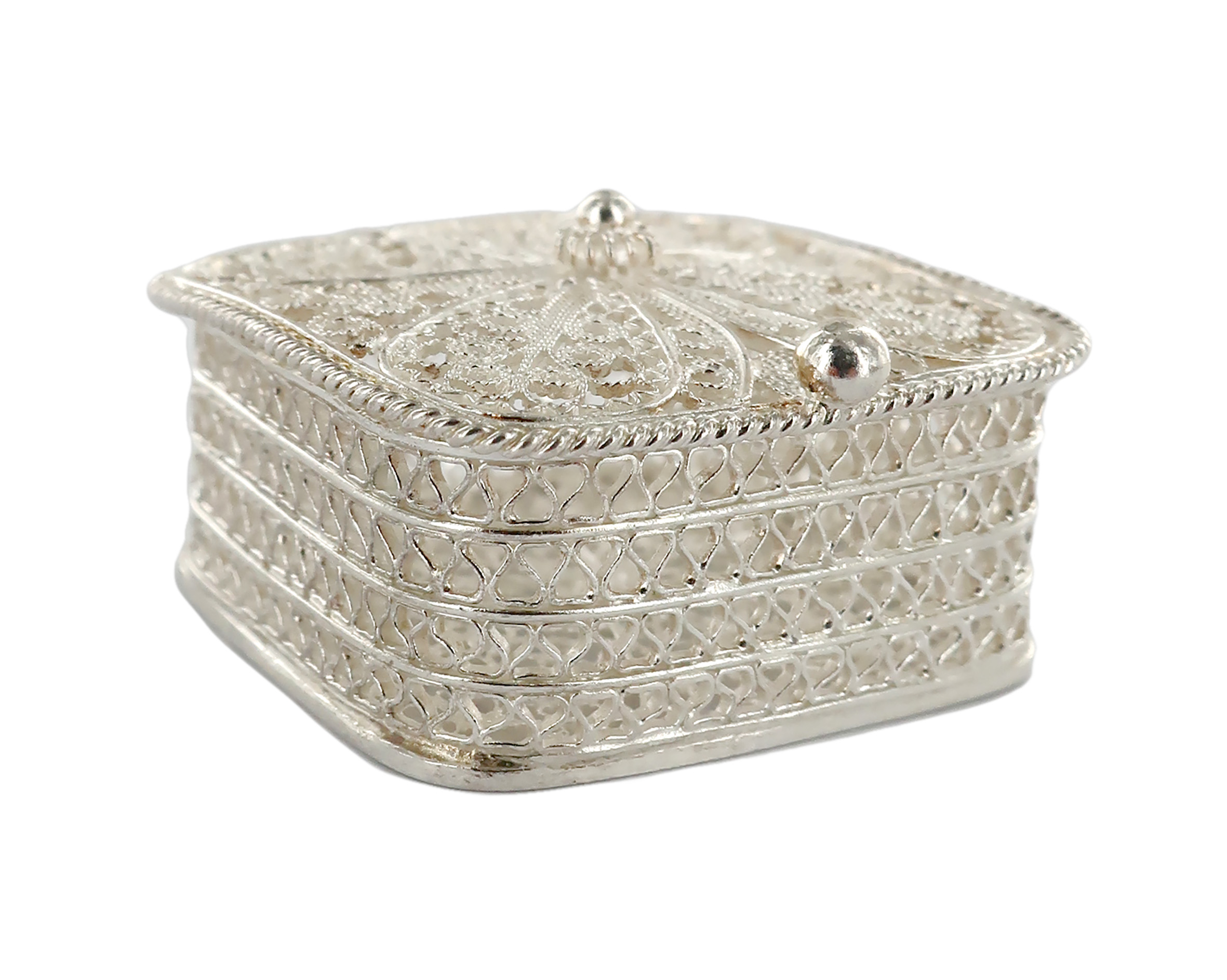 Scatolina a forma quadrata in filigrana d'argento 925.