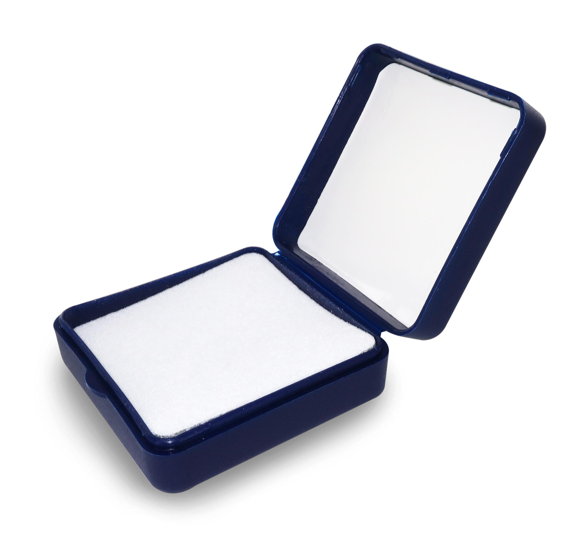 Scatolina Portarosario in plastica rigida di colore blu - 5 x 5 cm