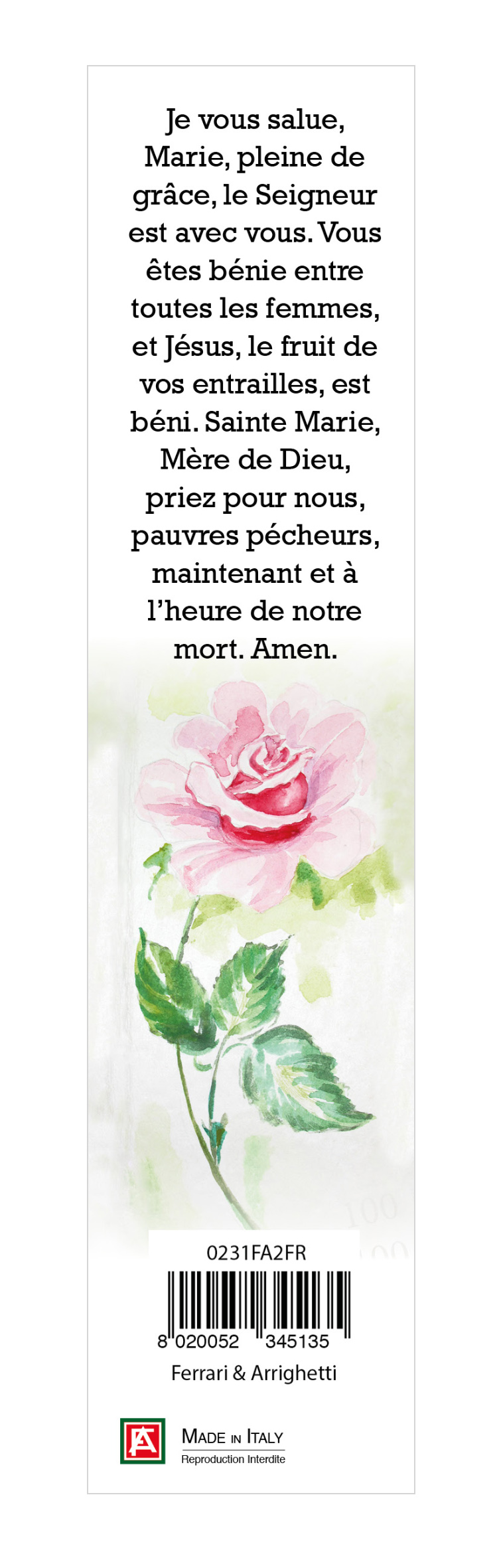 Il rosario è confezionato in un cartoncino con l'immagine della Madonna Fatima, sul retro vi è una preghiera dedicata a lei il tutto infilato in una busta trasparente.