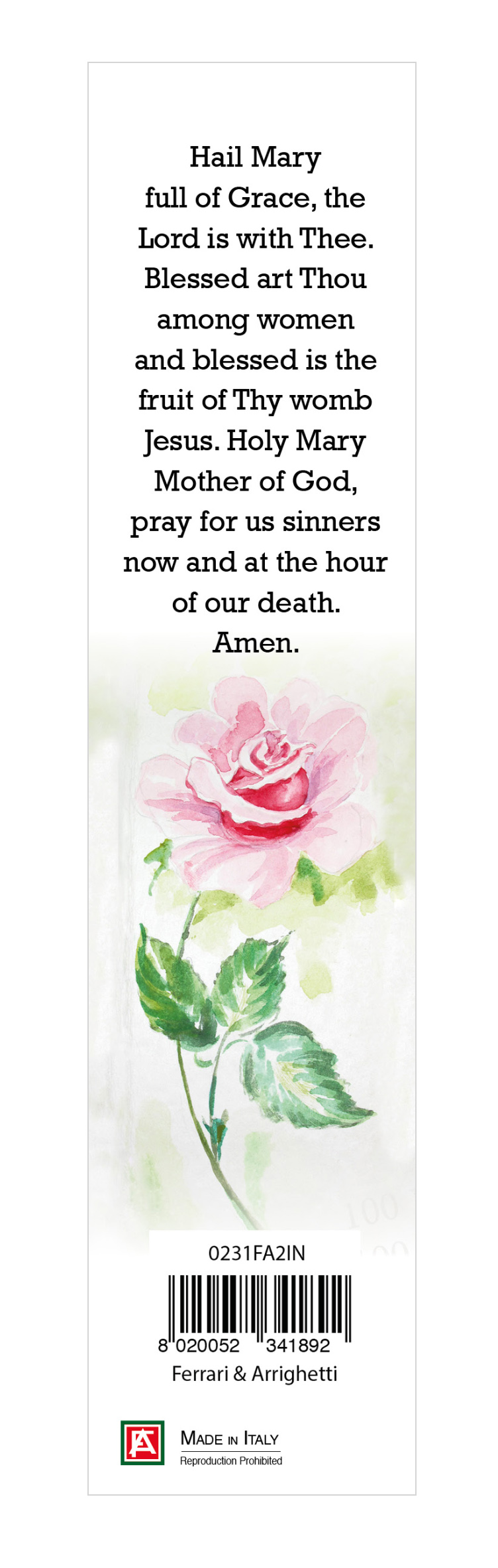 Il rosario è confezionato in un cartoncino con l'immagine della Madonna Fatima, sul retro vi è una preghiera dedicata a lei il tutto infilato in una busta trasparente.