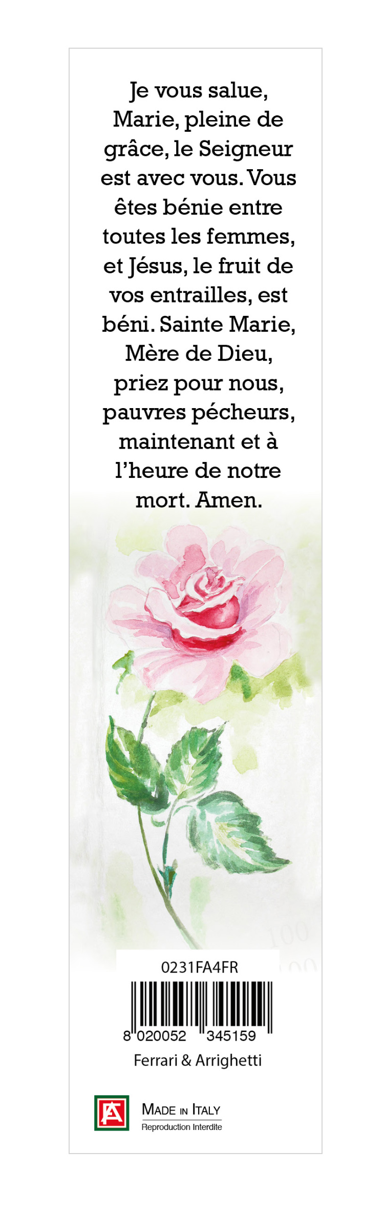 Il rosario è confezionato in un cartoncino con l'immagine della Madonna Fatima, sul retro vi è una preghiera dedicata a lei il tutto infilato in una busta trasparente.