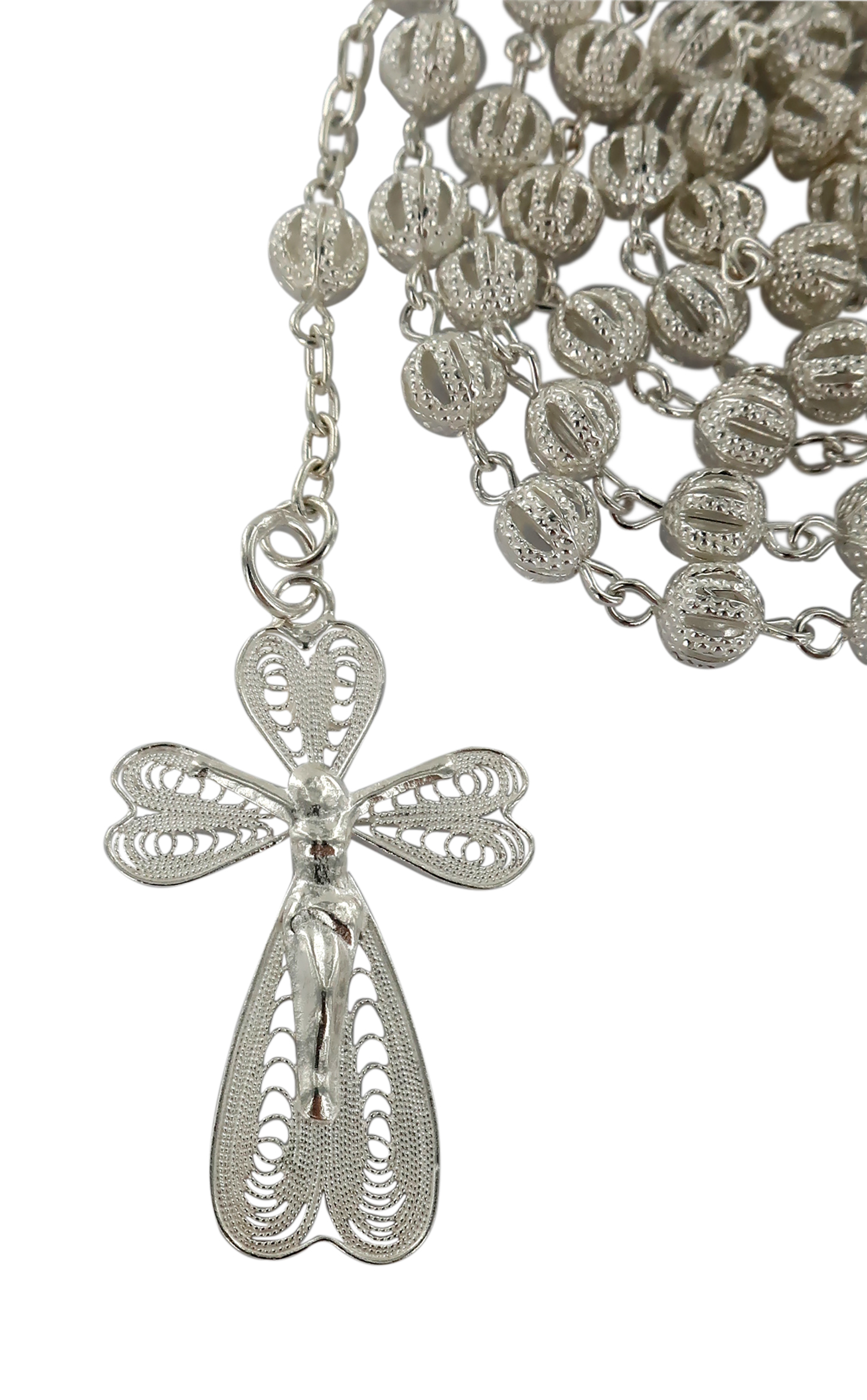 Rosario filigrana in argento 925 con grani da Ø 5 mm