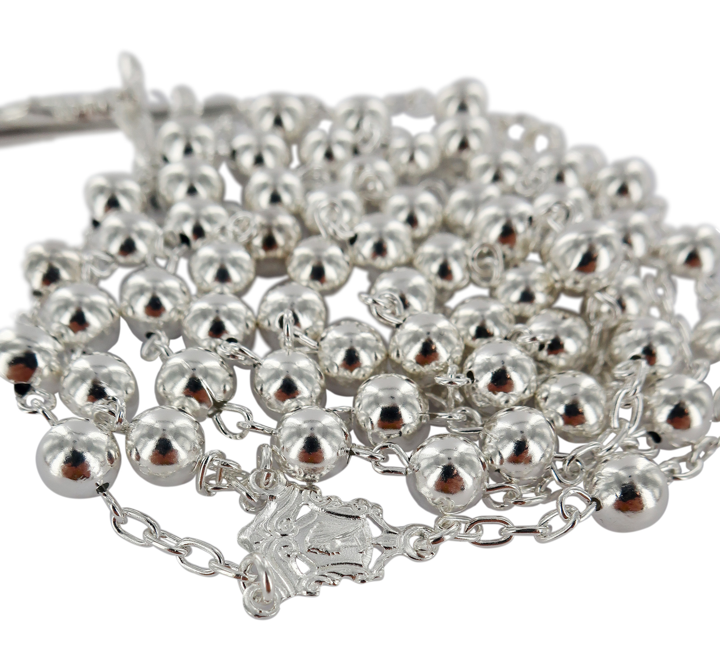 Rosario in argento 925 con grani tondi da Ø 5 mm