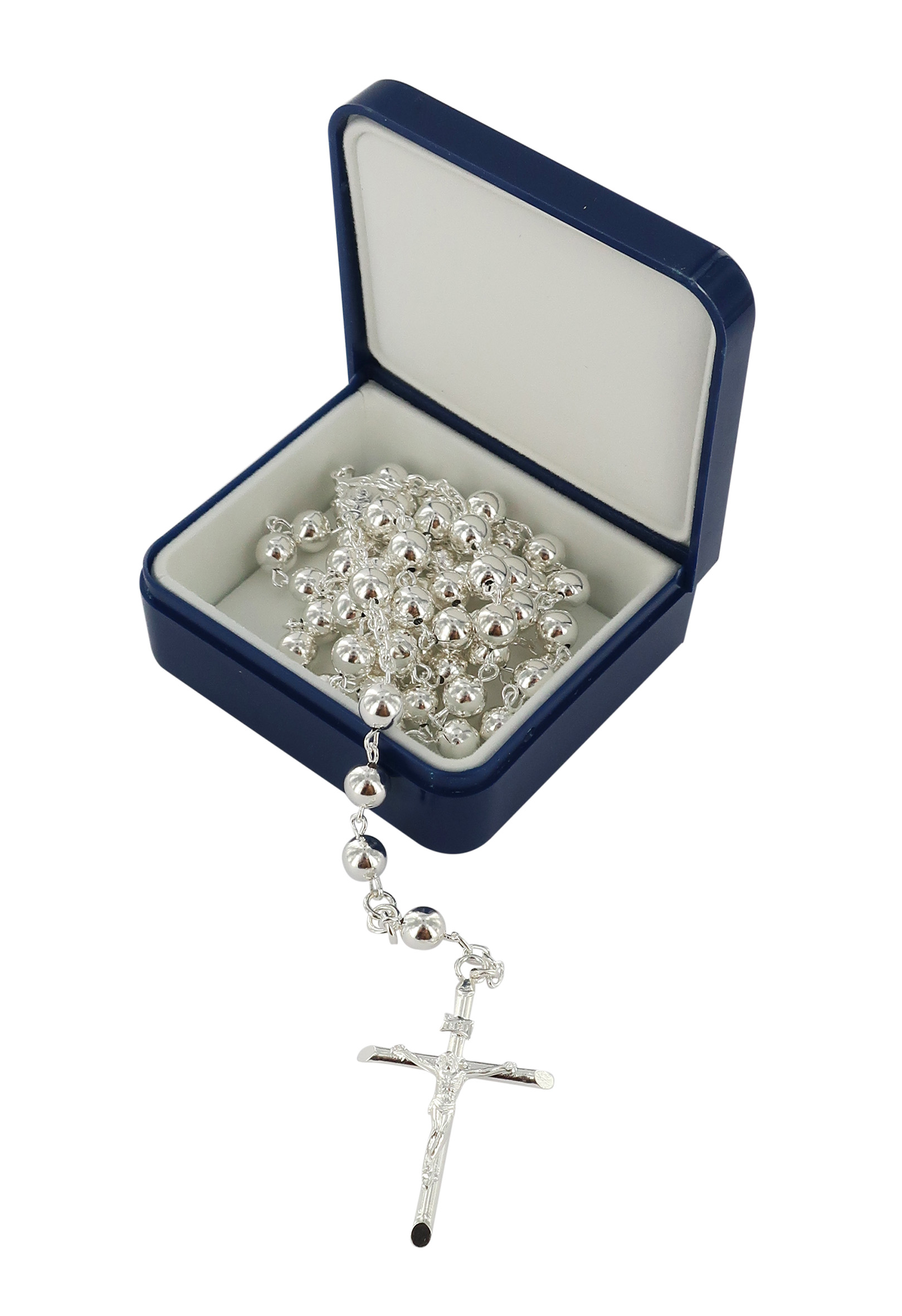 Il rosario è rilegato a mano in argento 925 con grani tondi di mm 5.
