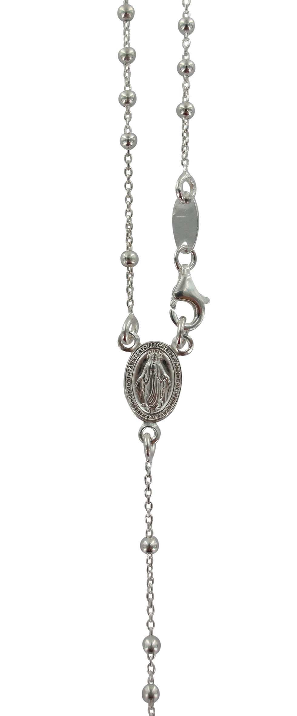 Rosario Madonna Miracolosa in argento 925 con grani da Ø 2,5 mm e preghiera in italiano