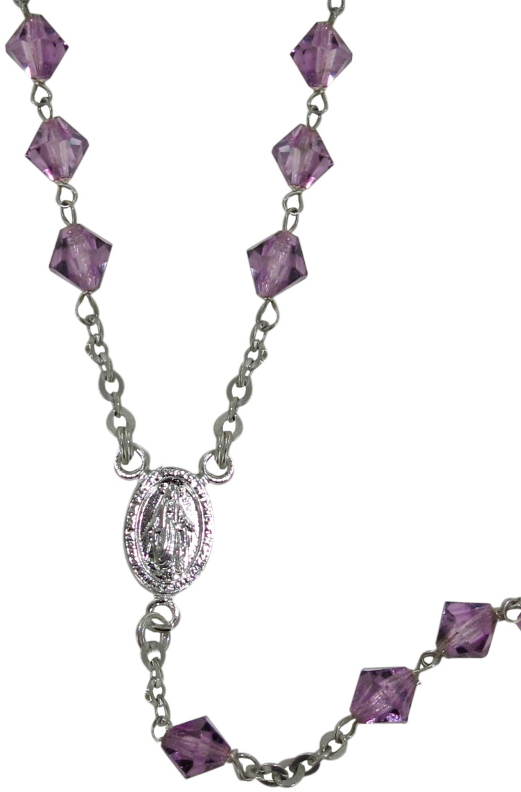 Rosario con grani in cristallo rondello da Ø 5 mm color viola e legatura in argento 925