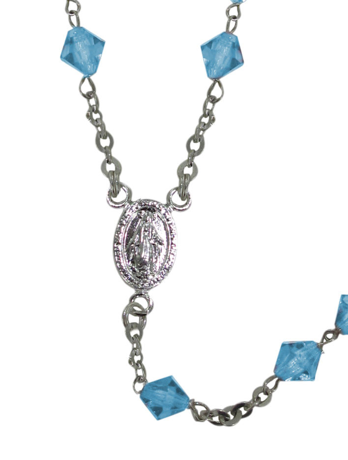 Rosario con grani in cristallo rondello da Ø 6 mm color azzurro e legatura in argento 925