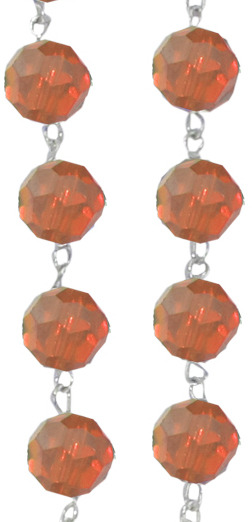 Prezioso rosario in cristallo sfaccettato rosa con legatura a mano in argento 925 con grani di diametro 6 mm.