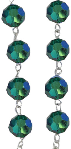 Prezioso rosario in cristallo sfaccettato verde con legatura a mano in argento 925 disponibile con grani di diametro 6 mm. Il grano è pieno, brillante e luminoso.