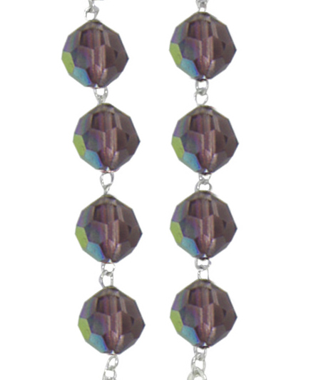 Rosario con grani in cristallo sfaccettato da Ø 8 mm color ametista e legatura in argento 925