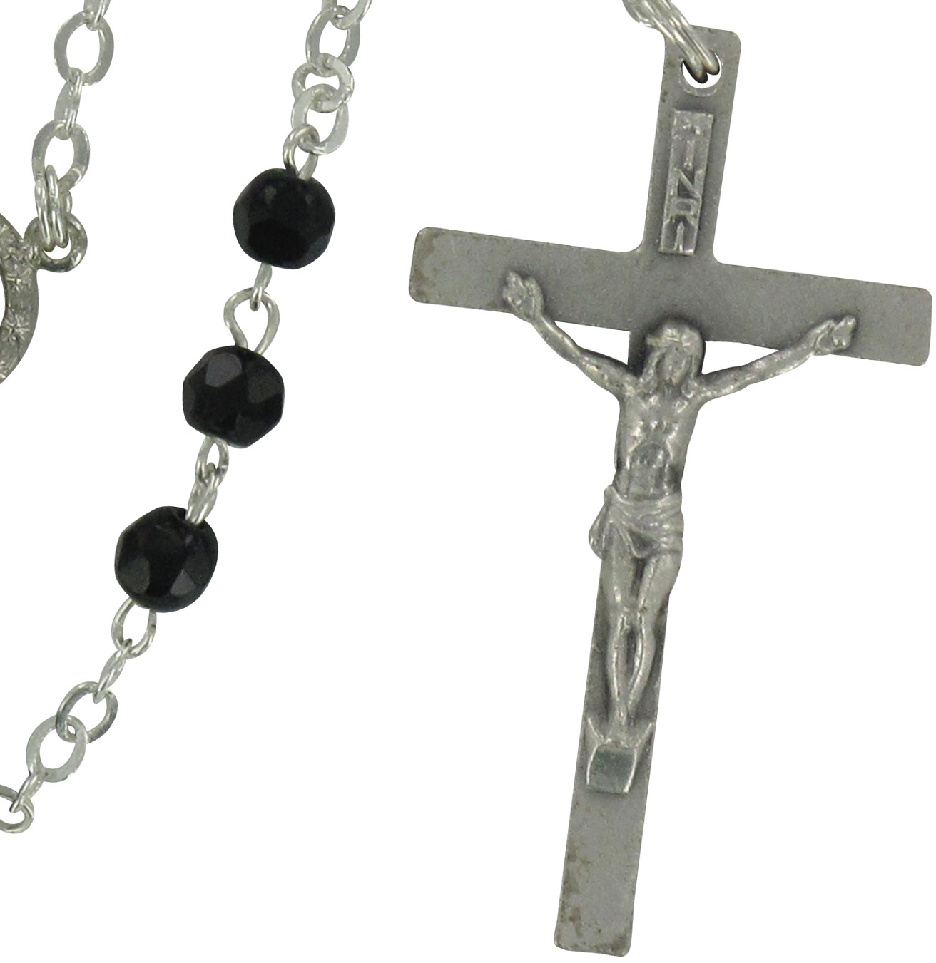 Rosario con grani in semicristallo nero da Ø 5 mm.