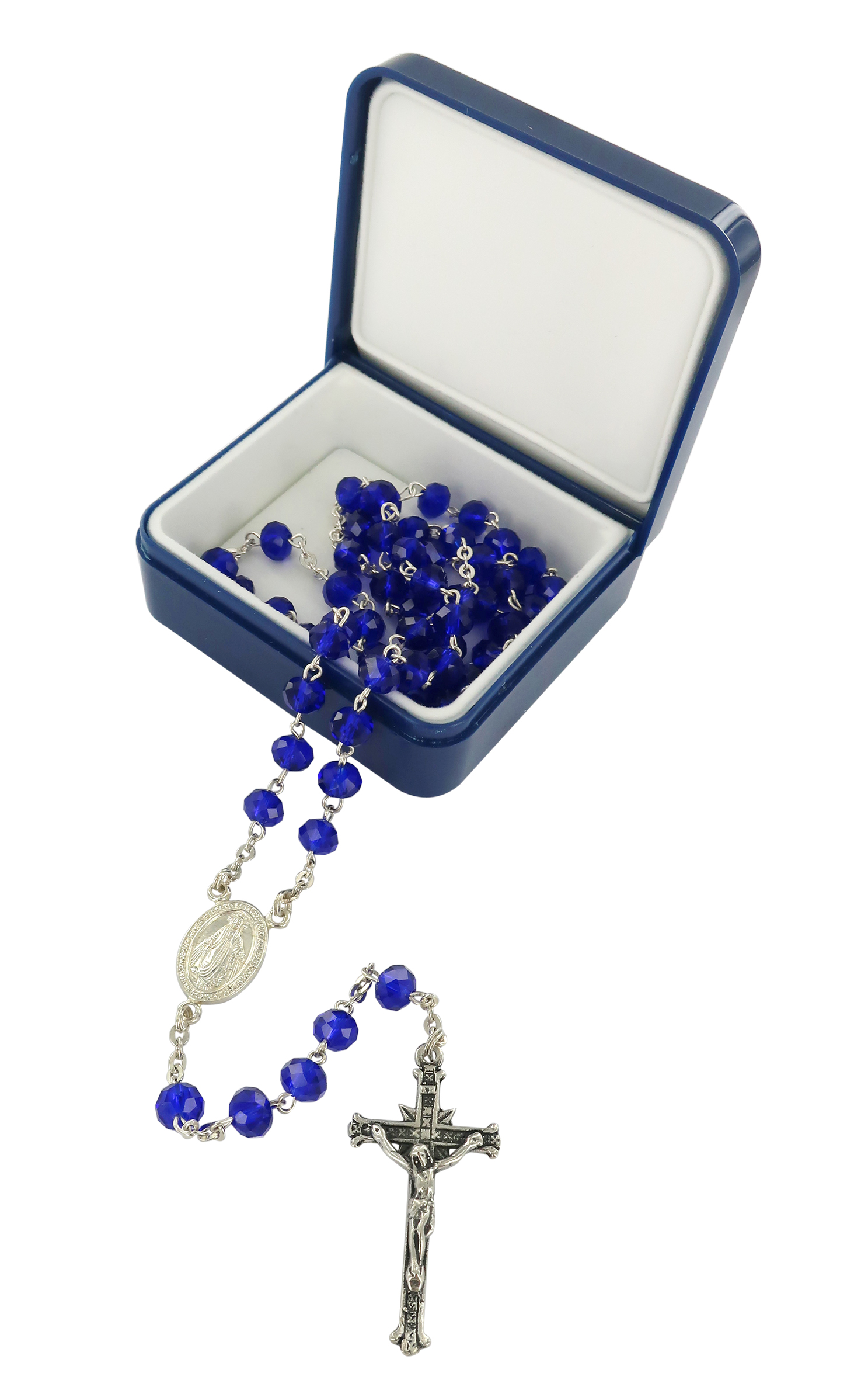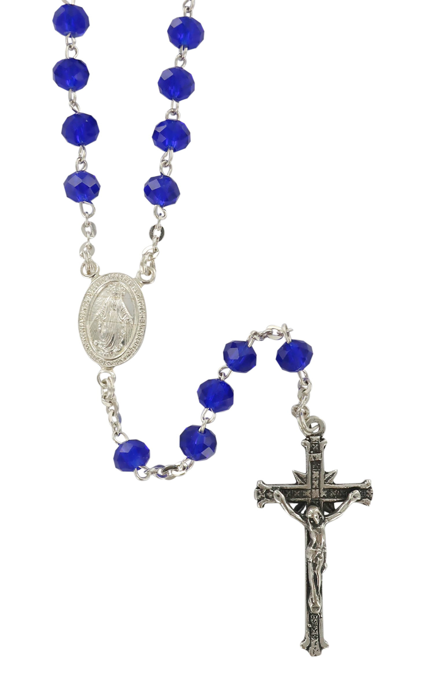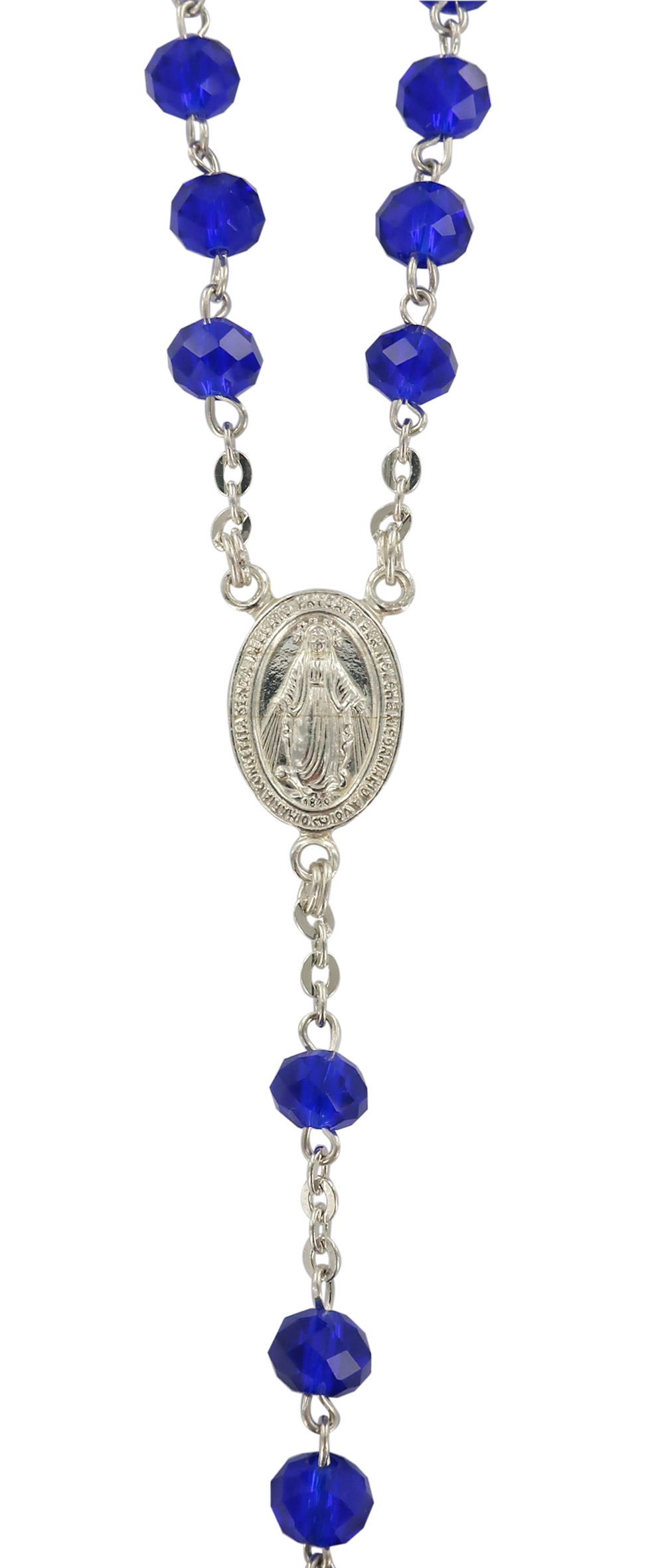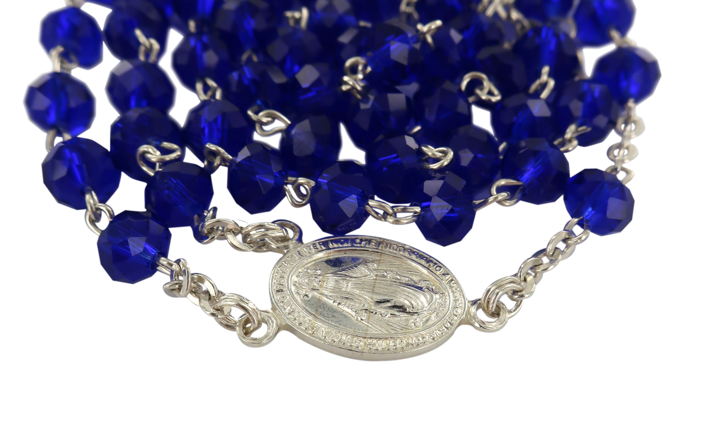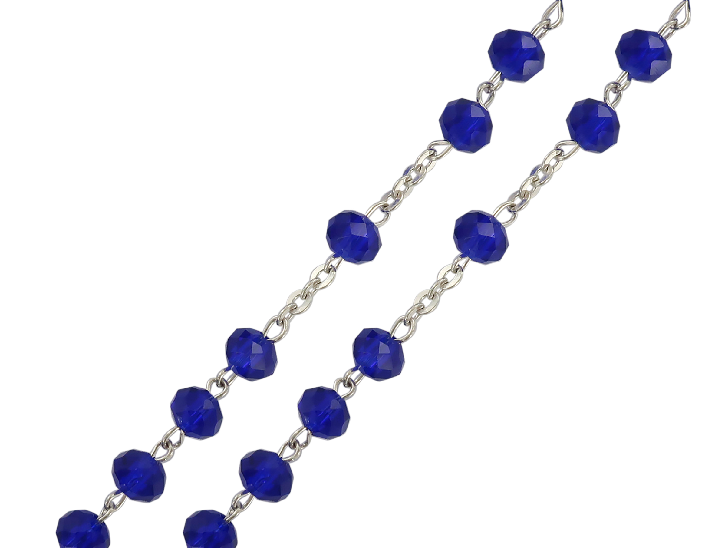 Rosario cristallo sfaccettato opacizzato con grani mm 6 color blu legatura in argento 925