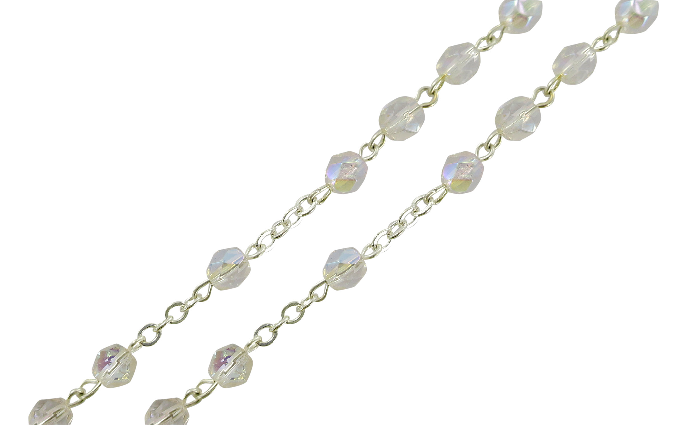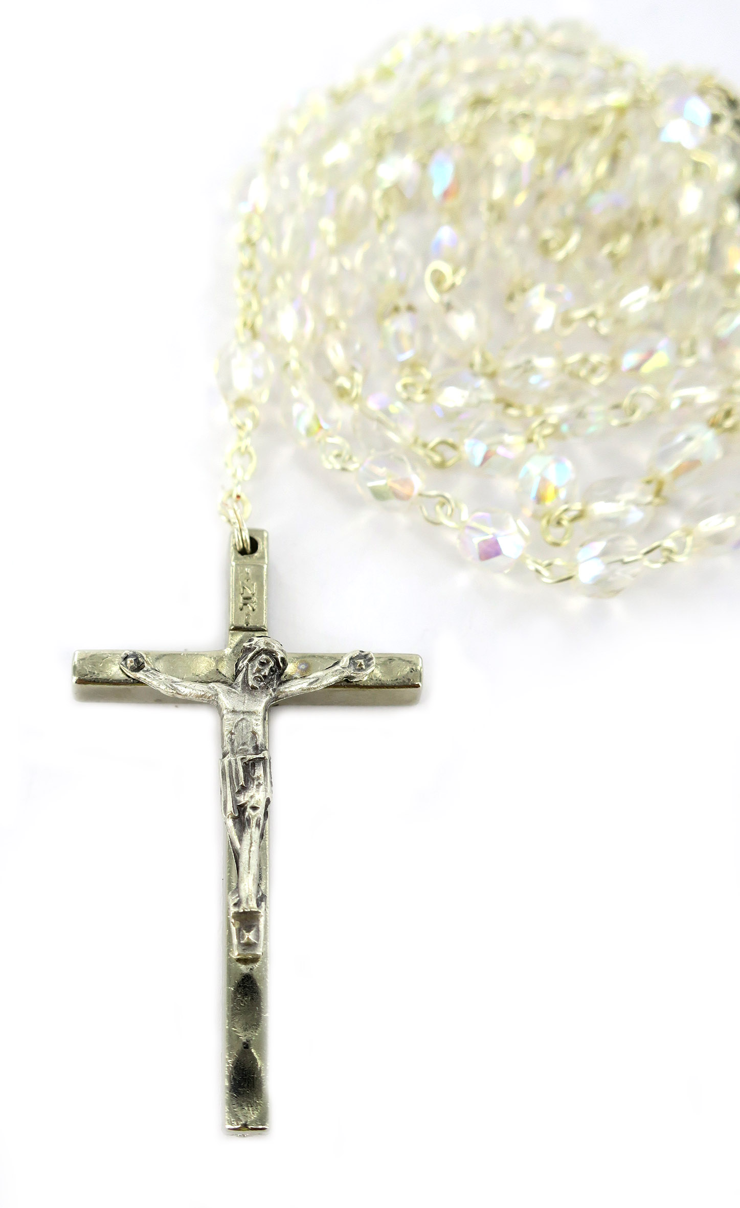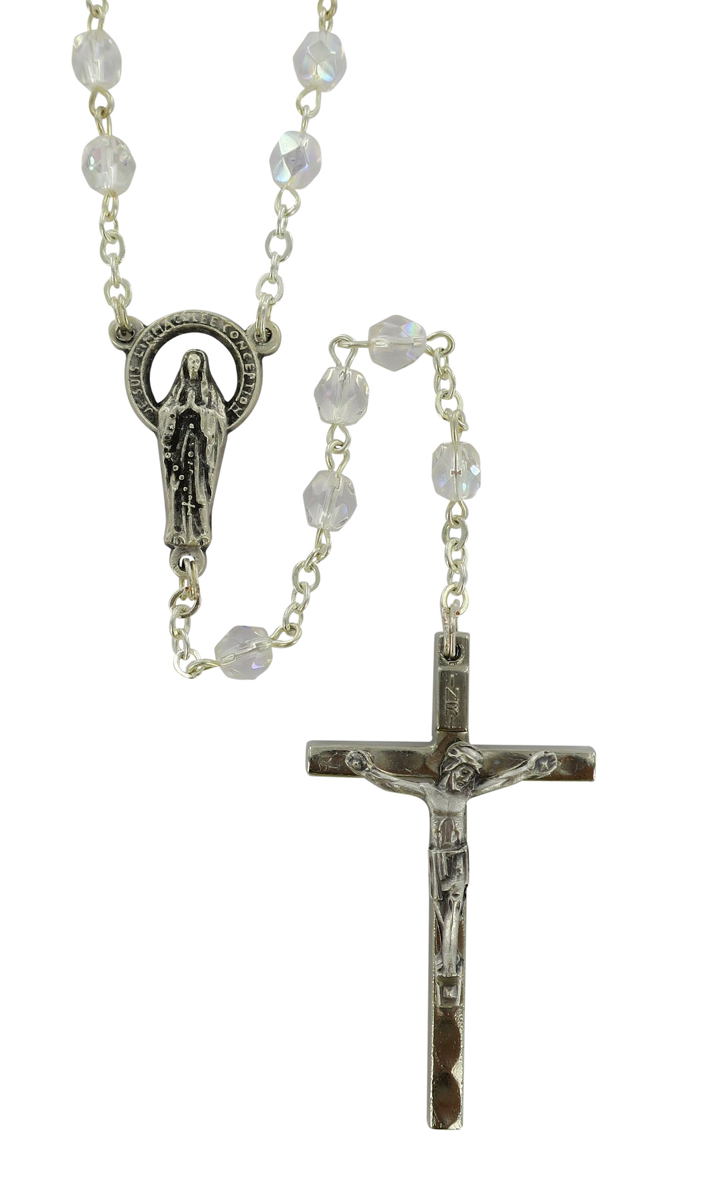 Rosario in semicristallo con grani di diametro 5 mm. Colore: bianco.