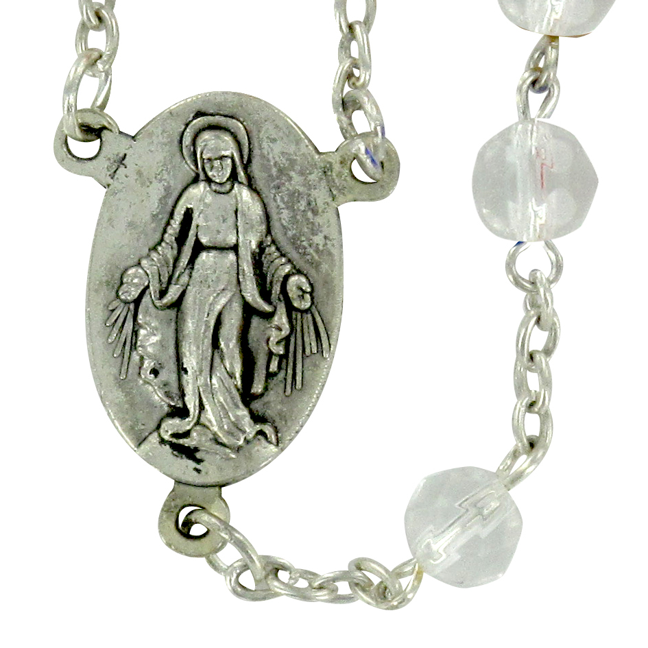 Rosario in semicristallo con diametro 6 mm .- bianco