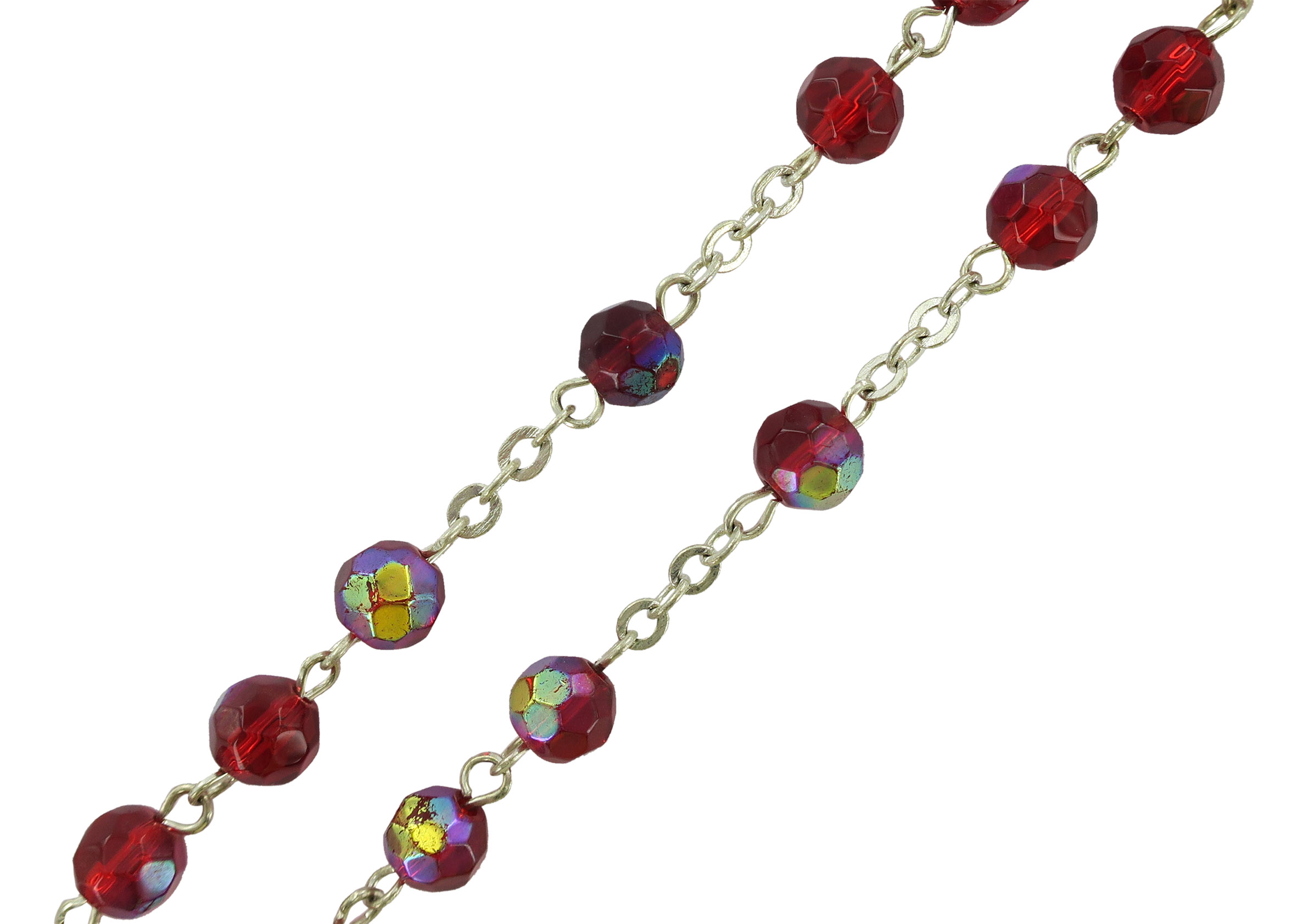 Rosario semicristallo rosso mm 6 con legatura in metallo