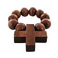 Rosario decina 10 grani in legno tondo legatura elastico - naturale con croce