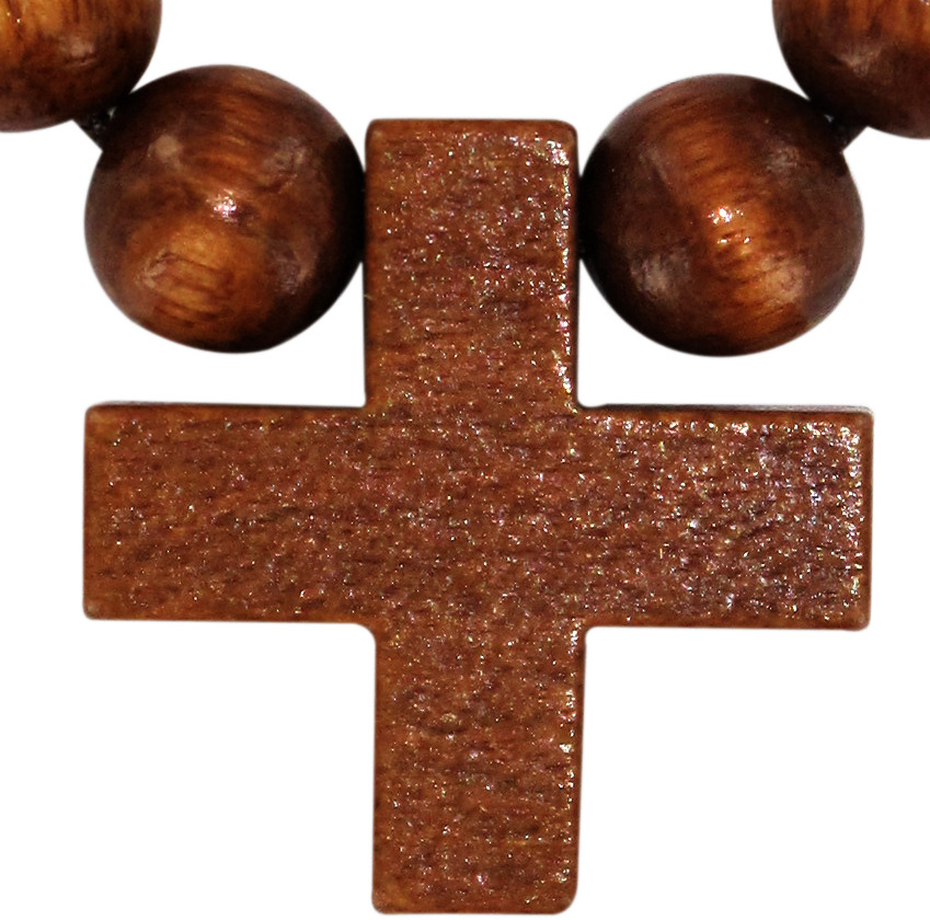 Rosario decina 10 grani in legno tondo legatura elastico - palissandro con croce