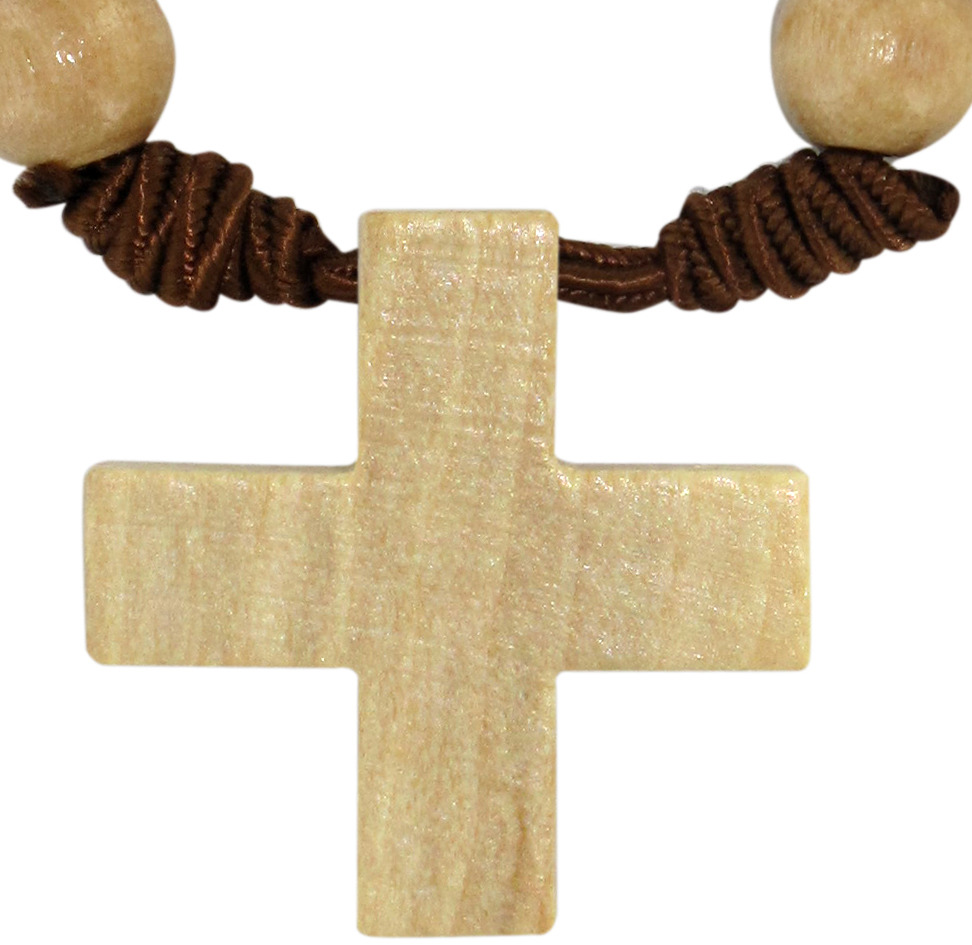 Rosario decina 10 grani in legno tondo legatura seta mm 6- grezzo con croce