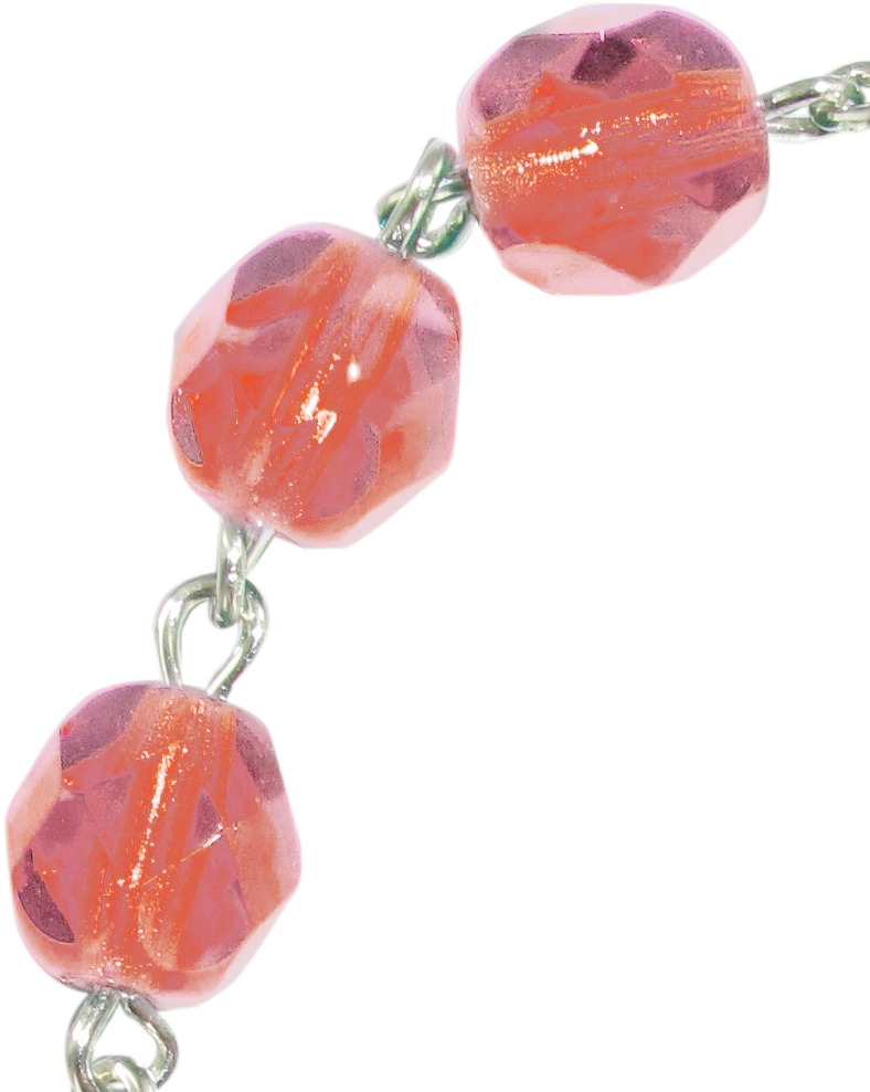 Rosario decina 10 grani in semicristallo croce filigrana mm 6 - rosa