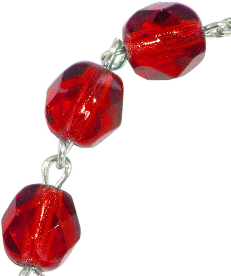 Rosario decina 10 grani in semicristallo croce tipo filigrana mm 6 - rubino