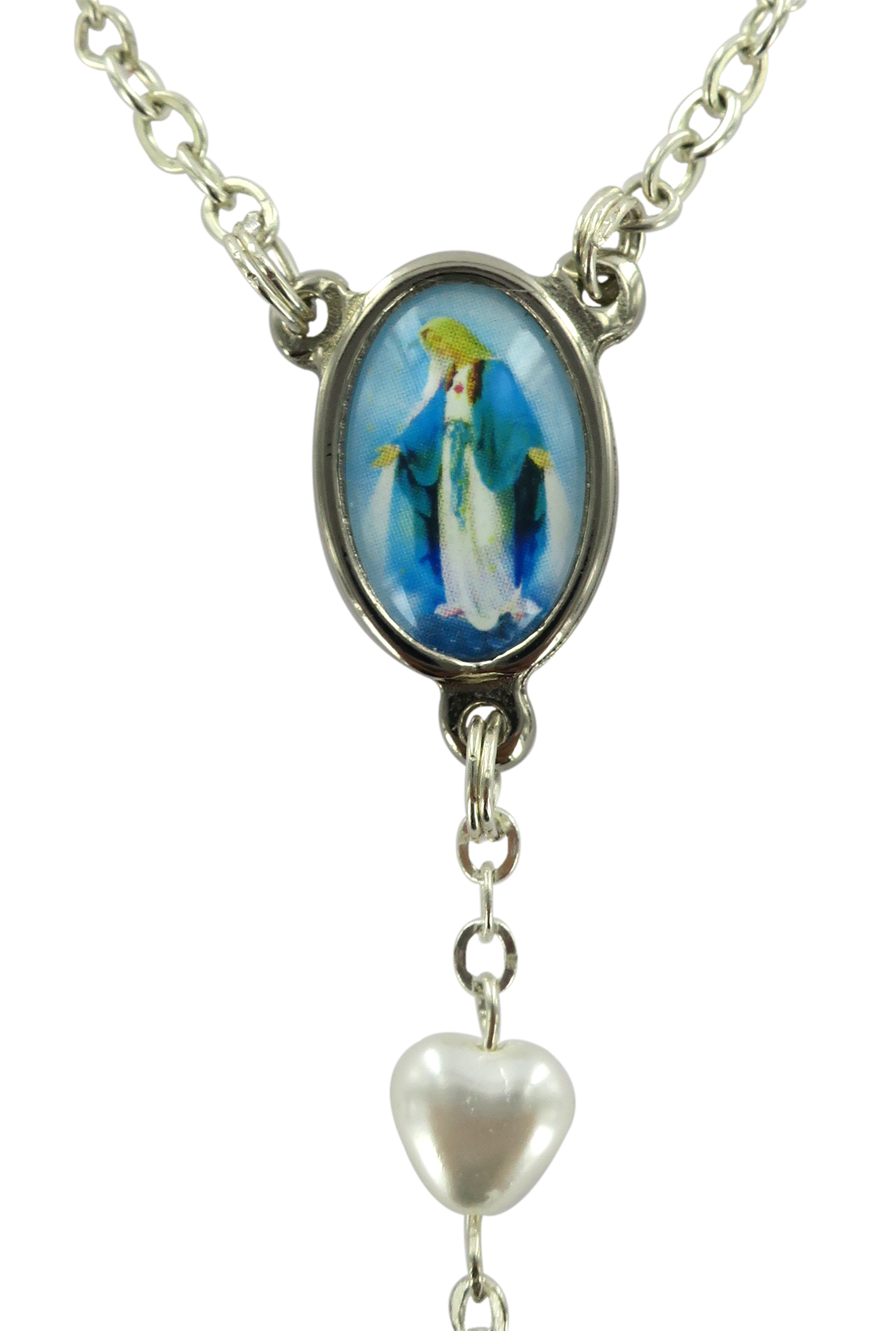 Rosario decina 11 grani cuoricino in vetro con crocera resinata della Madonna