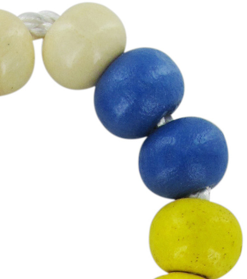 Rosario decina con 10 grani tondi in legno colorato di mm 6 con legatura fatta a mano con filo di seta e la Croce in legno naturale.