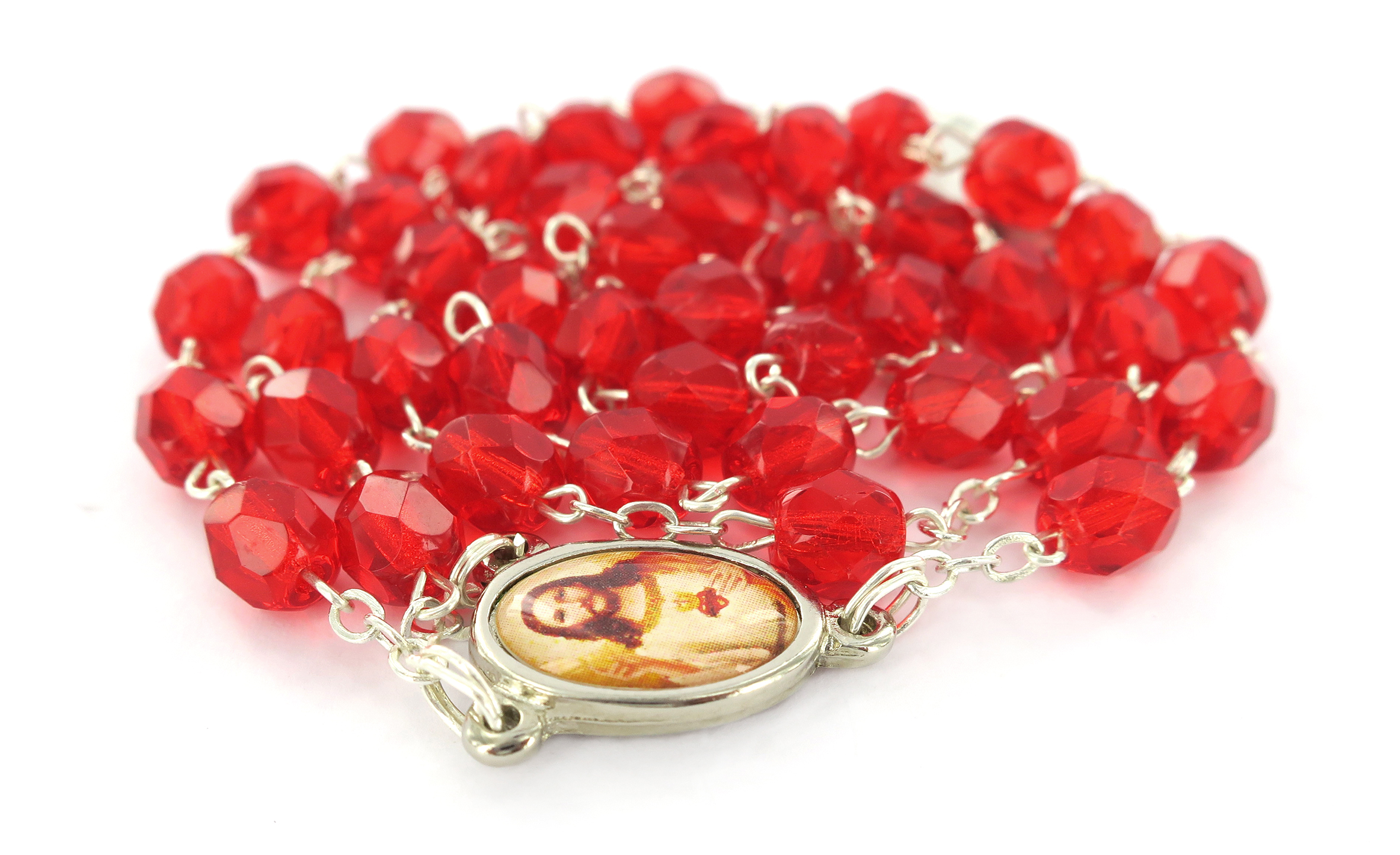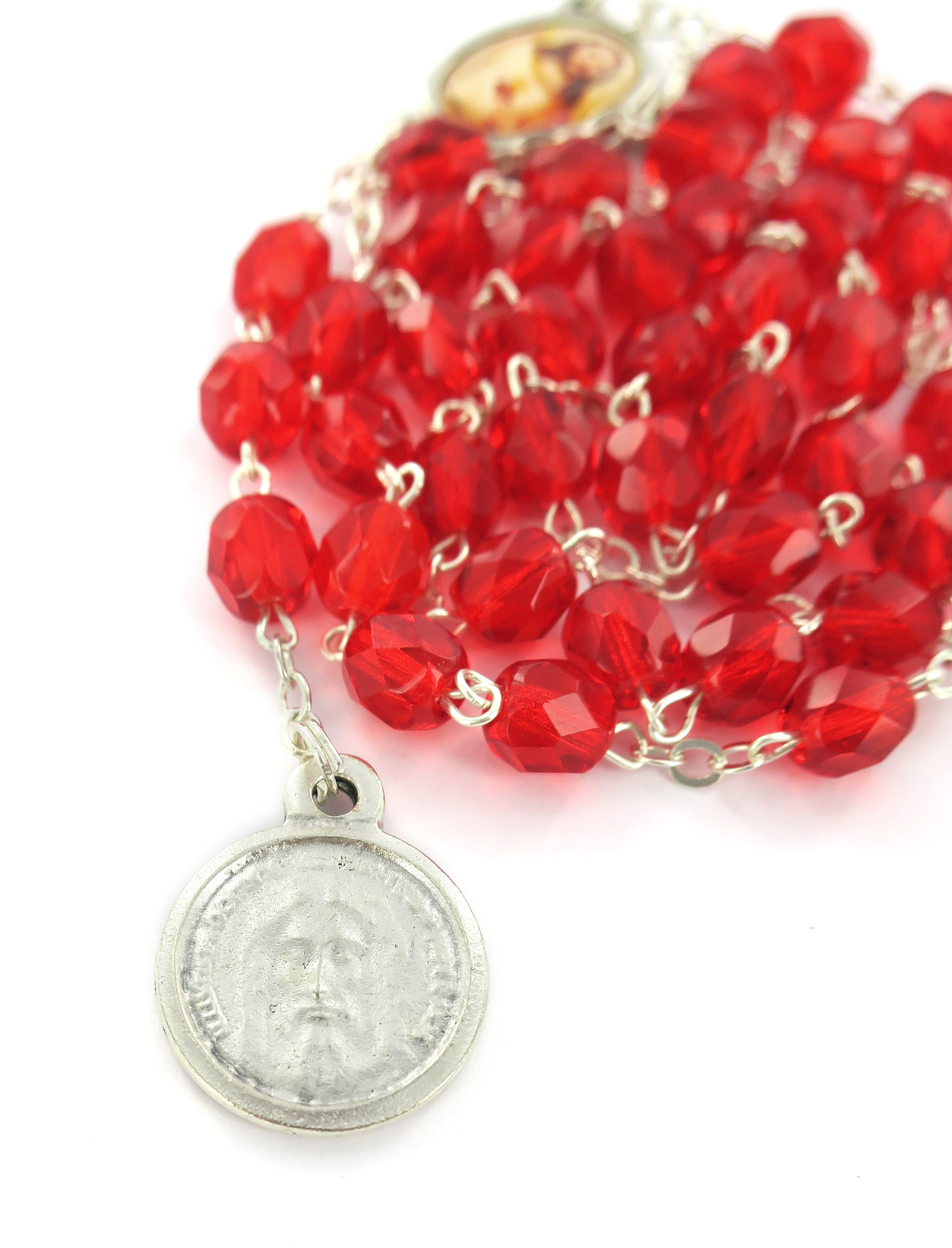 Rosario Prezioso Sangue con Spiegazione e Legatura a Mano, Plastica e Metallo, Rosso