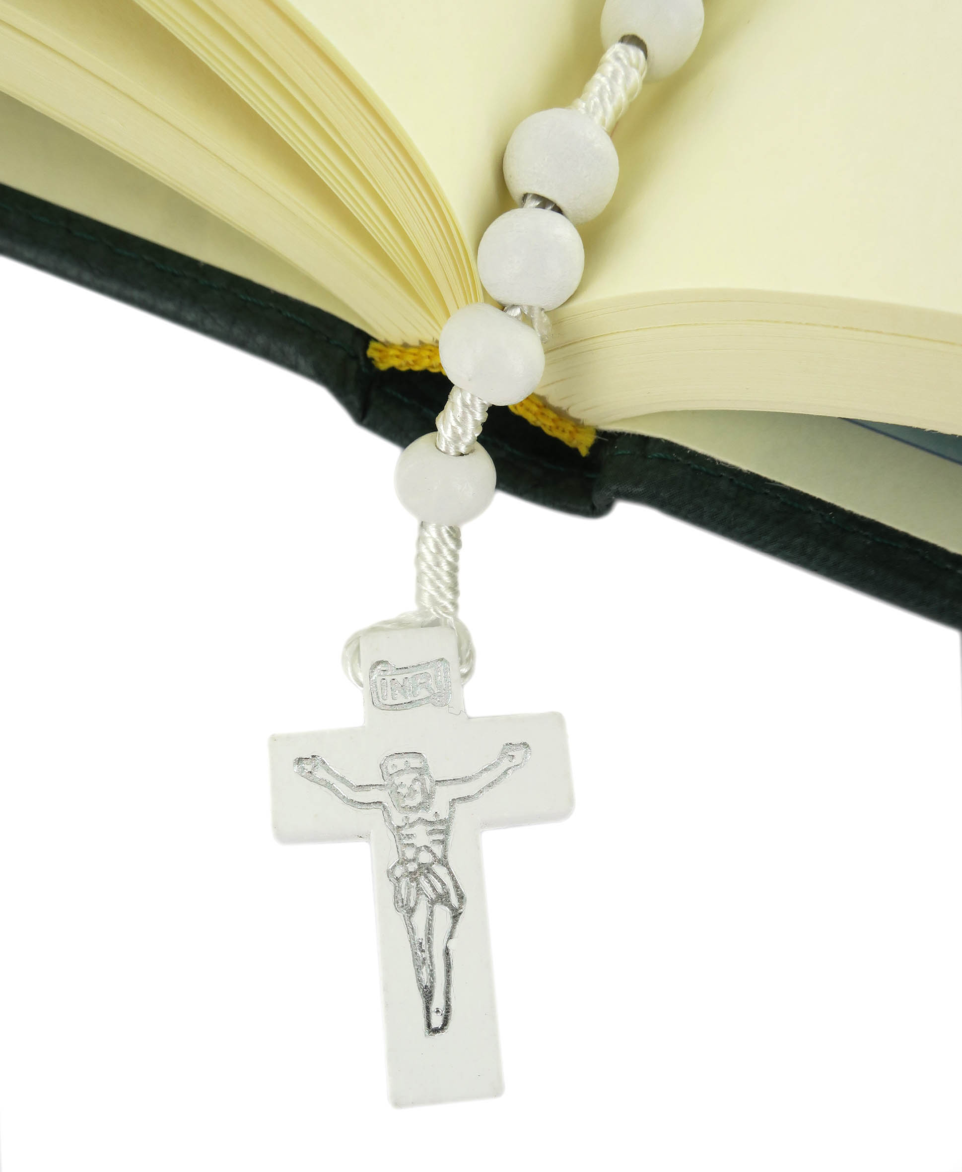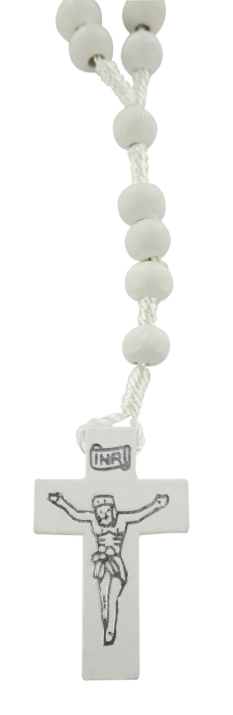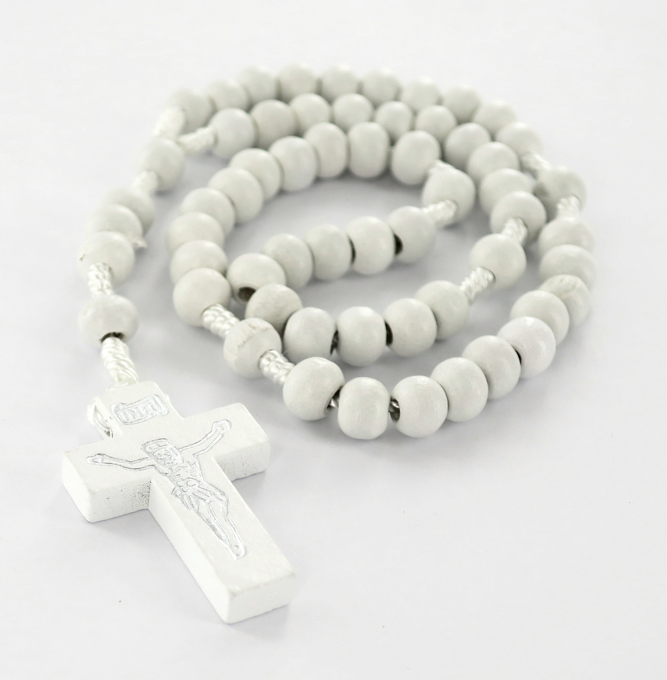 Rosario economico in legno tondo bianco diametro mm 7 legatura in seta