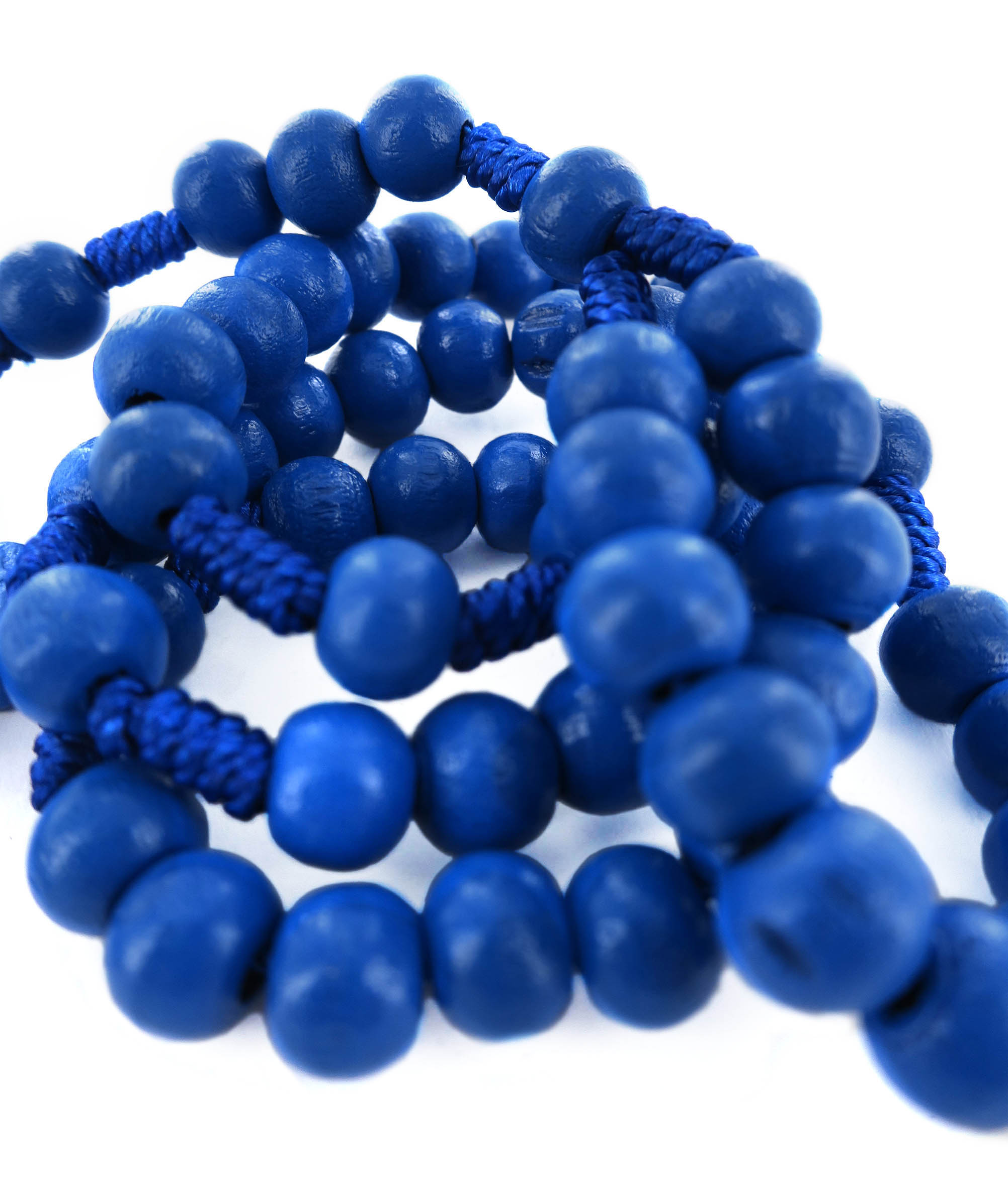 Rosario in legno tondo blu diametro mm 7 legatura in seta
