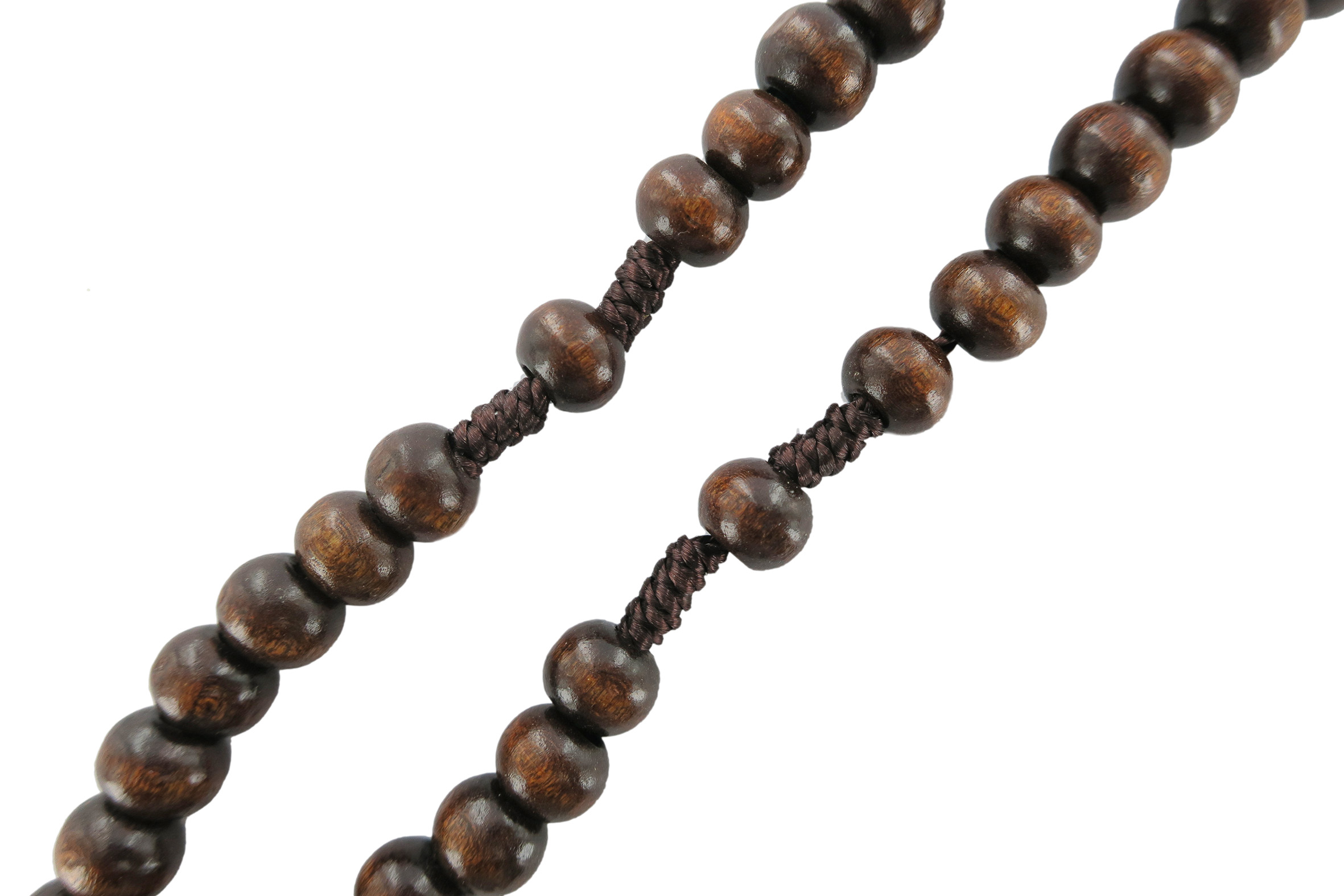 Rosario economico in legno tondo marrone diametro mm 7 legatura in seta