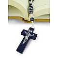 Ogni grano è di millimetri 7 e sulla croce in legno è impresso il corpo di Cristo in colore argento.
