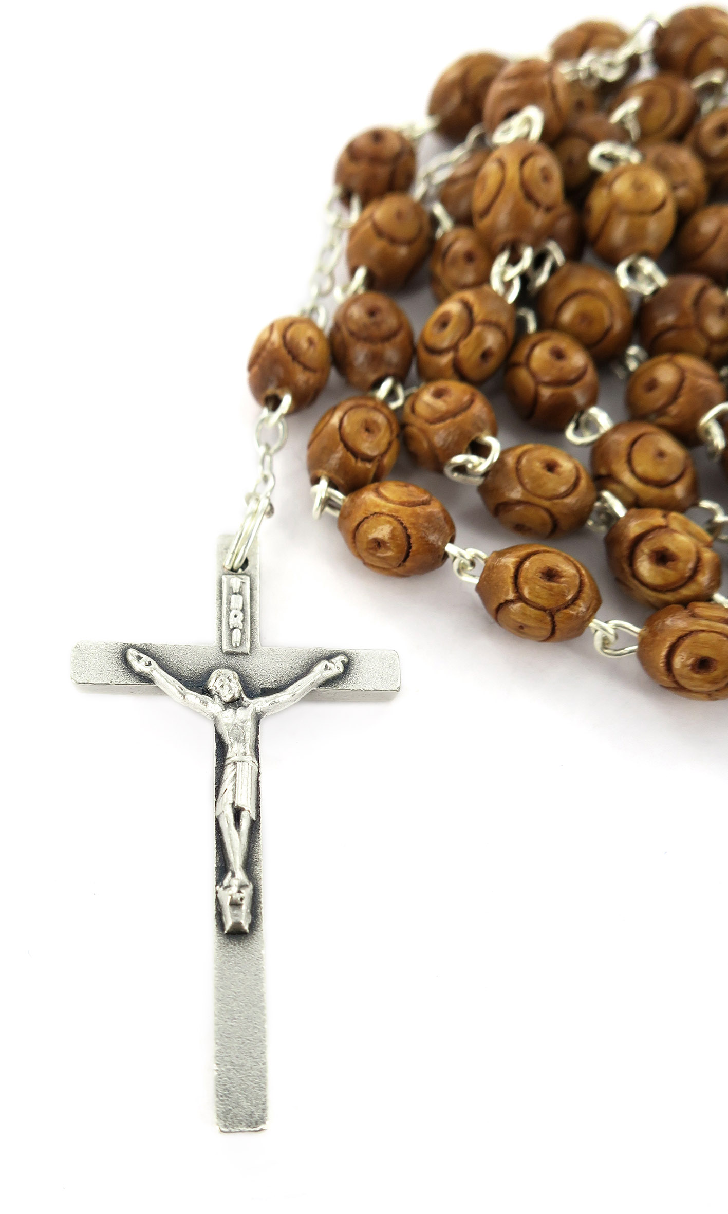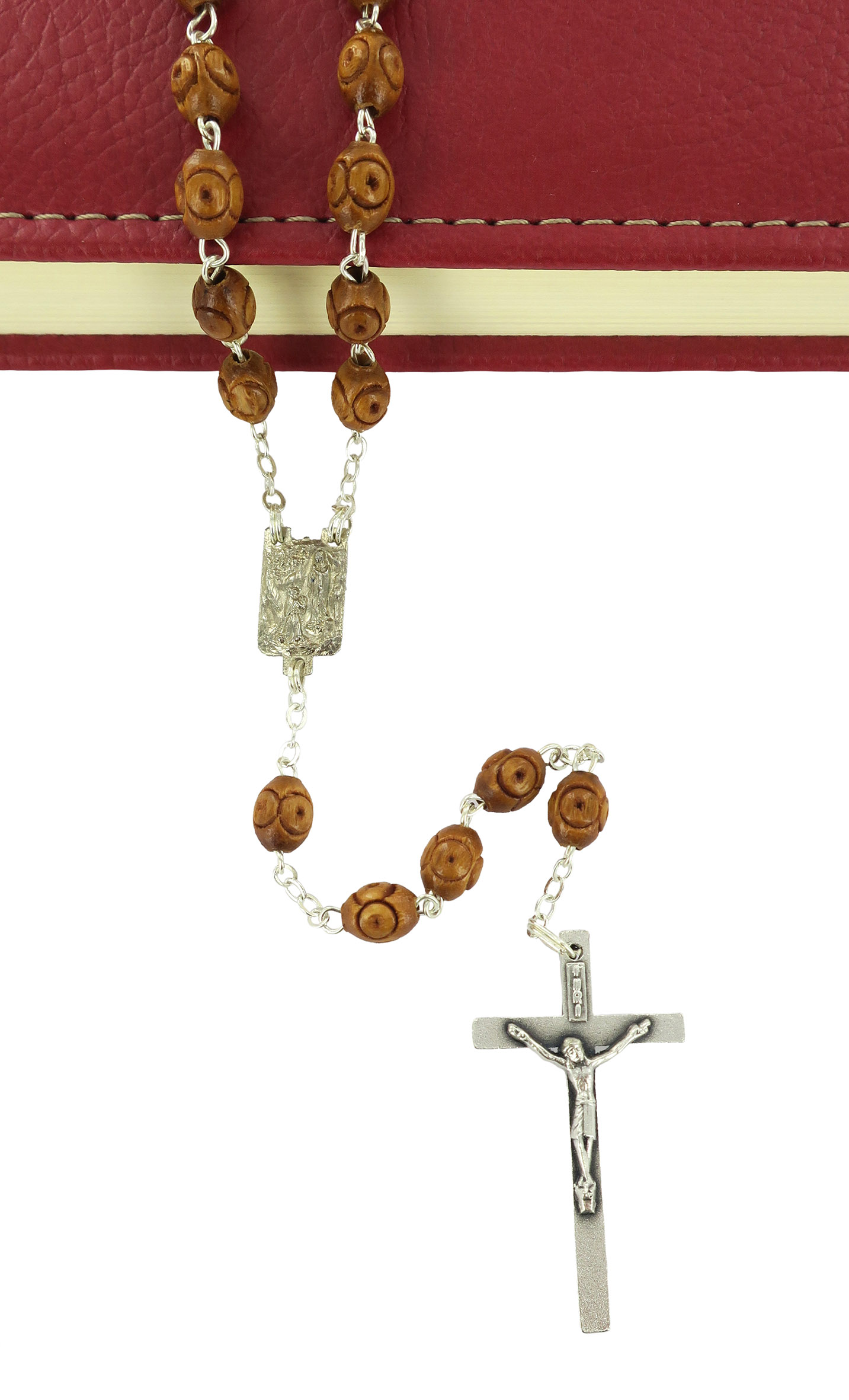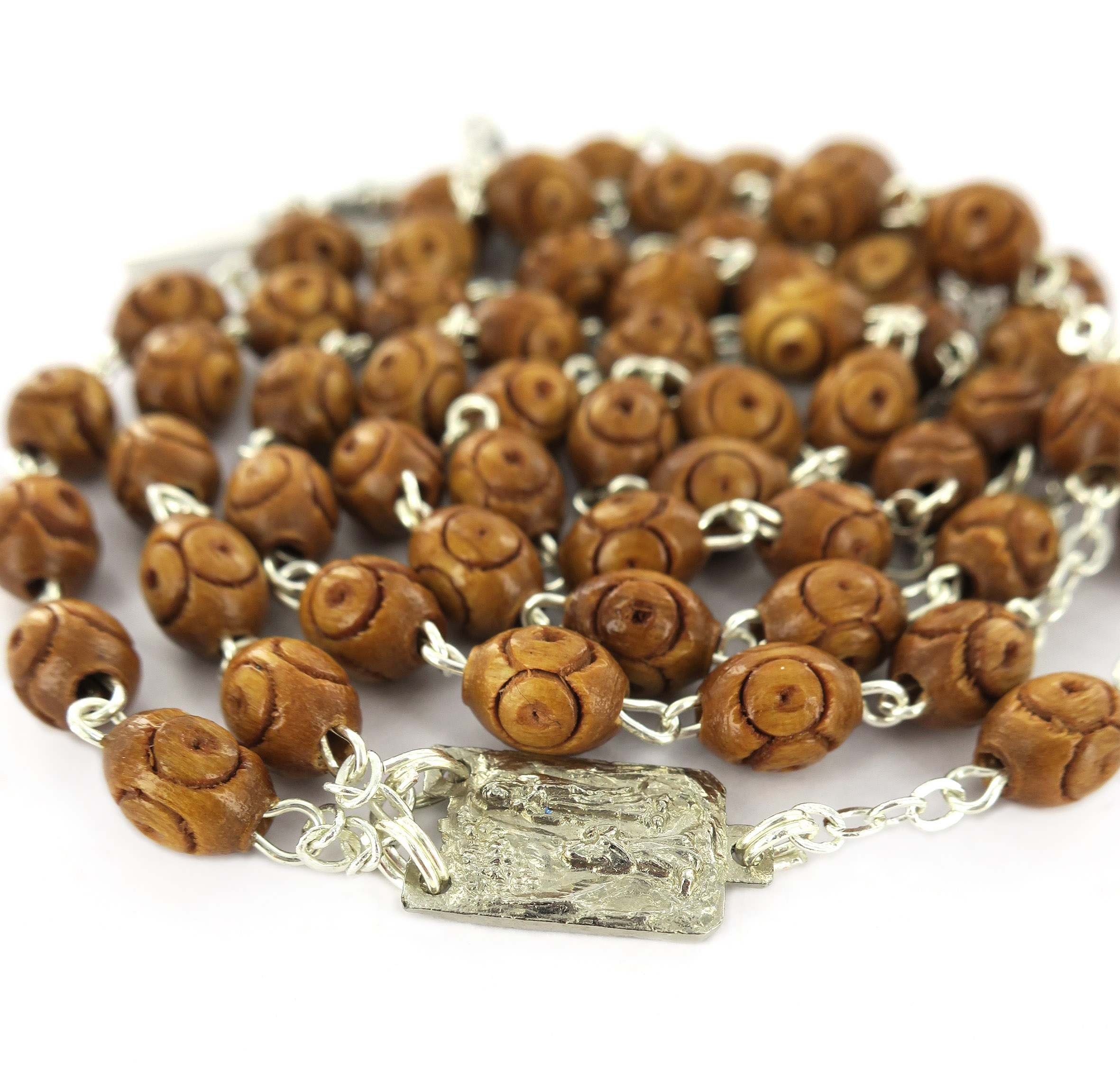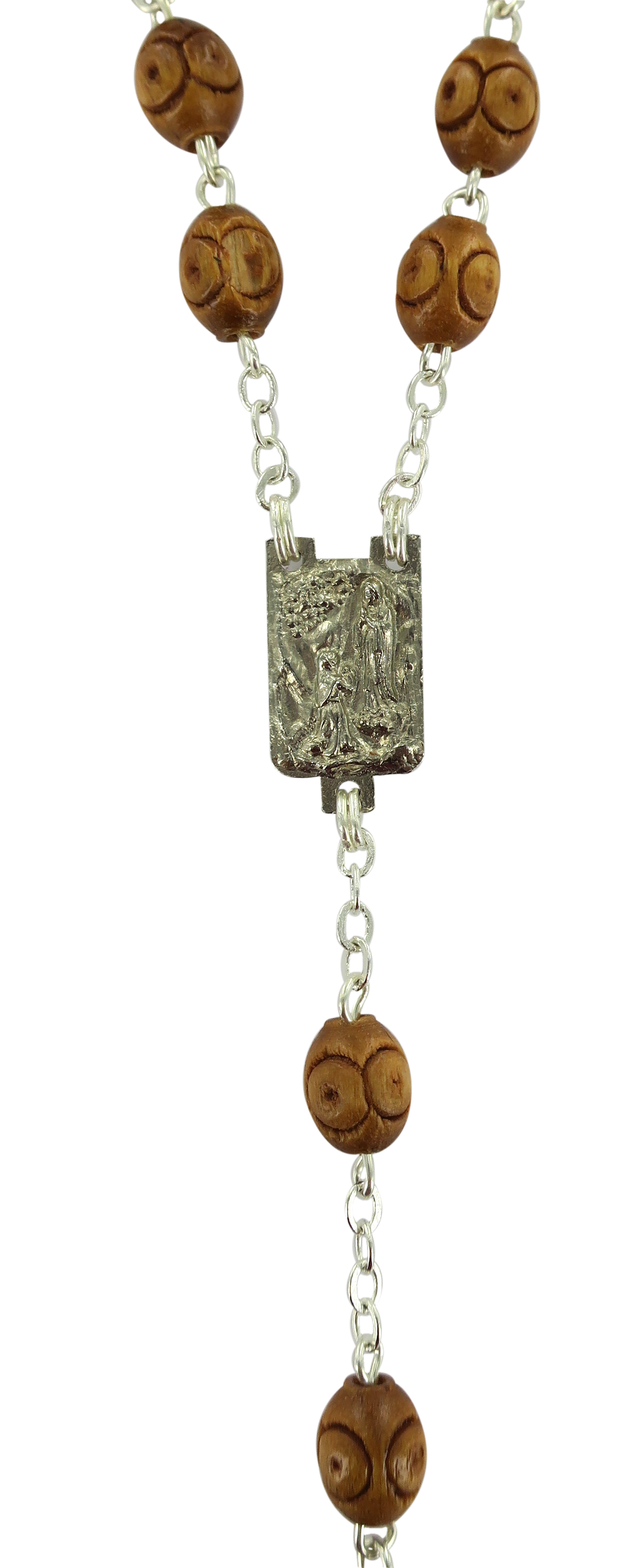 Rosario in legno naturale lavorato Ø 5 mm con legatura in ottone argentato
