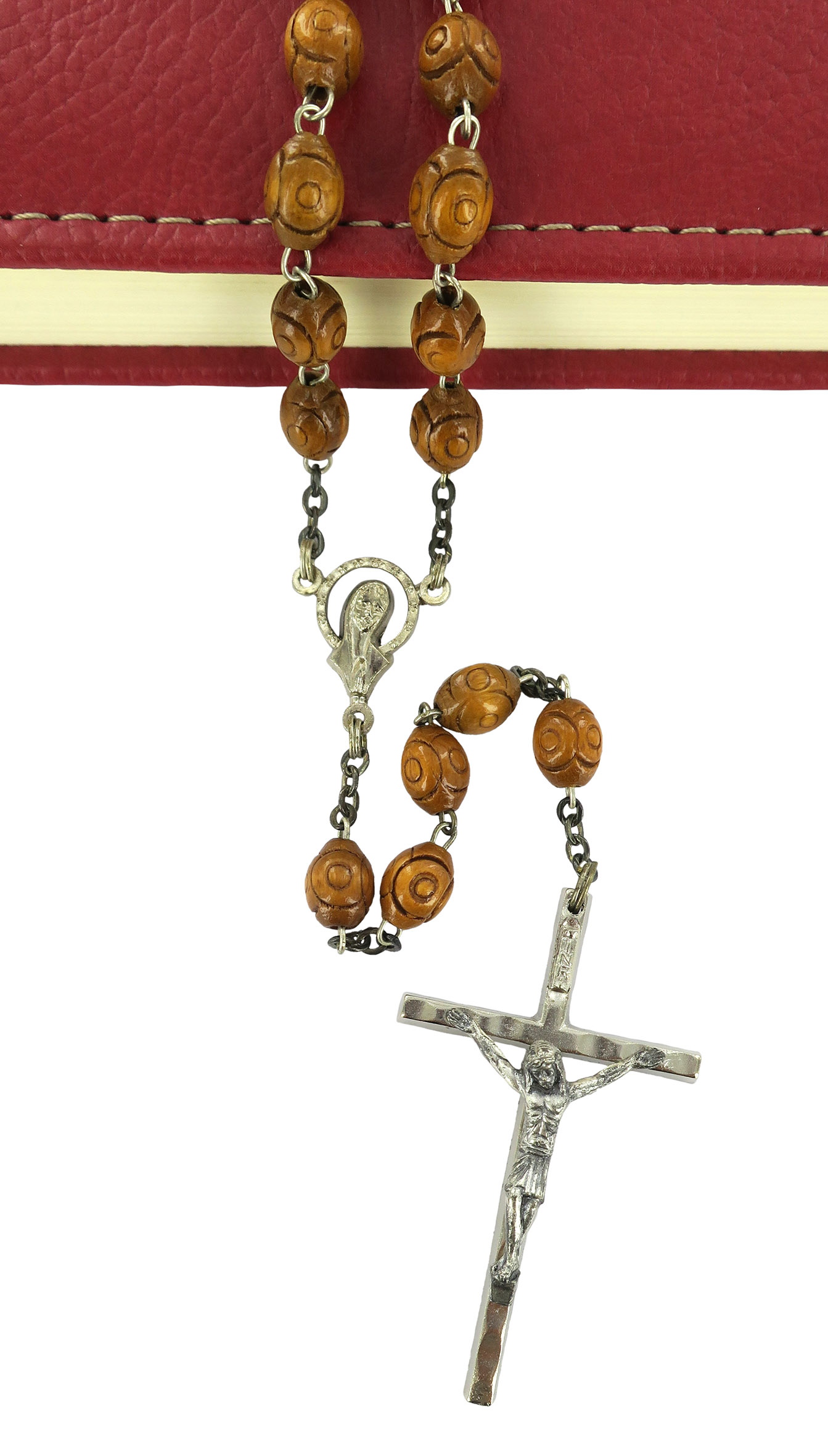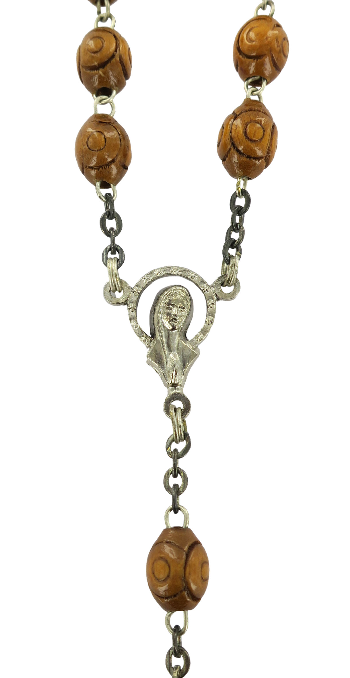 Rosario in legno naturale lavorato Ø 6 mm con legatura in ottone argentato