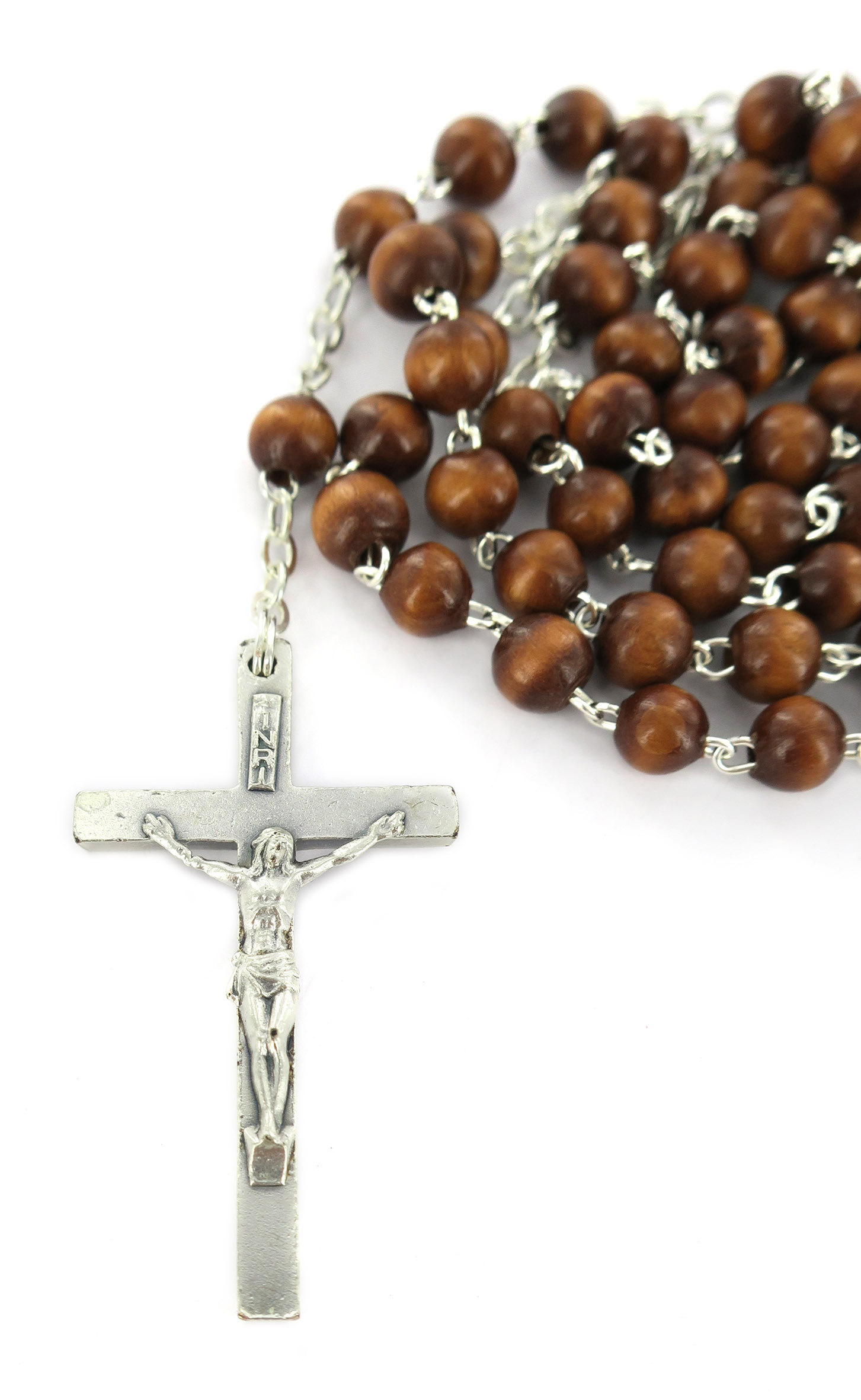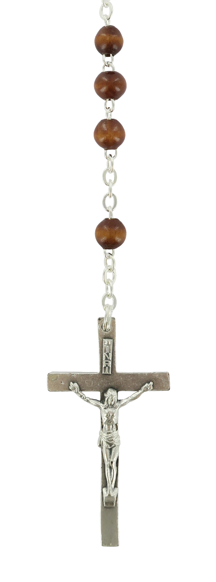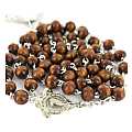 Rosario in legno naturale tondo mm 4 legatura ottone argentato