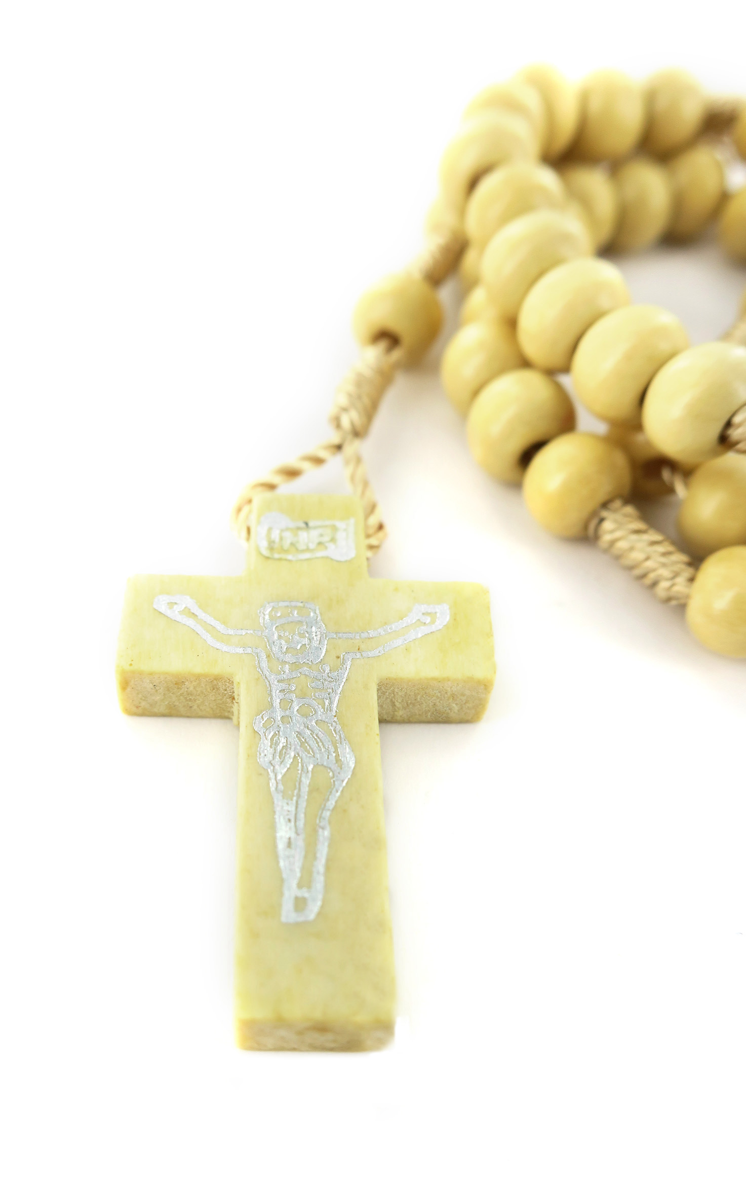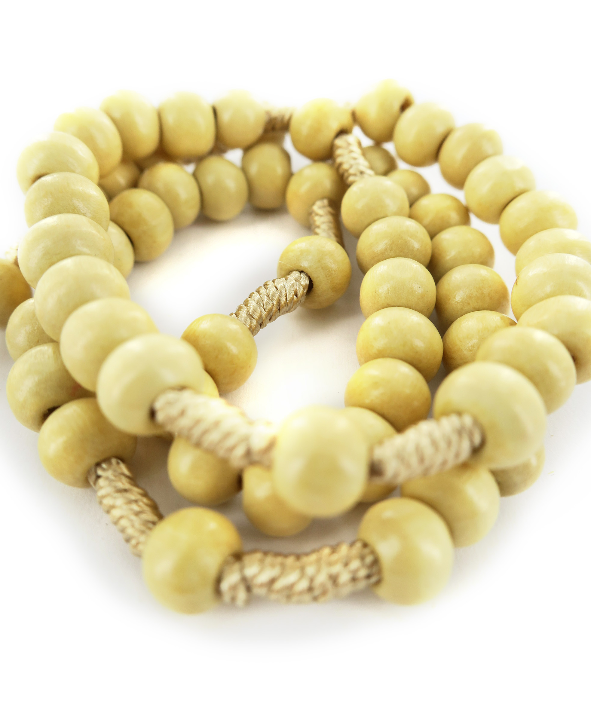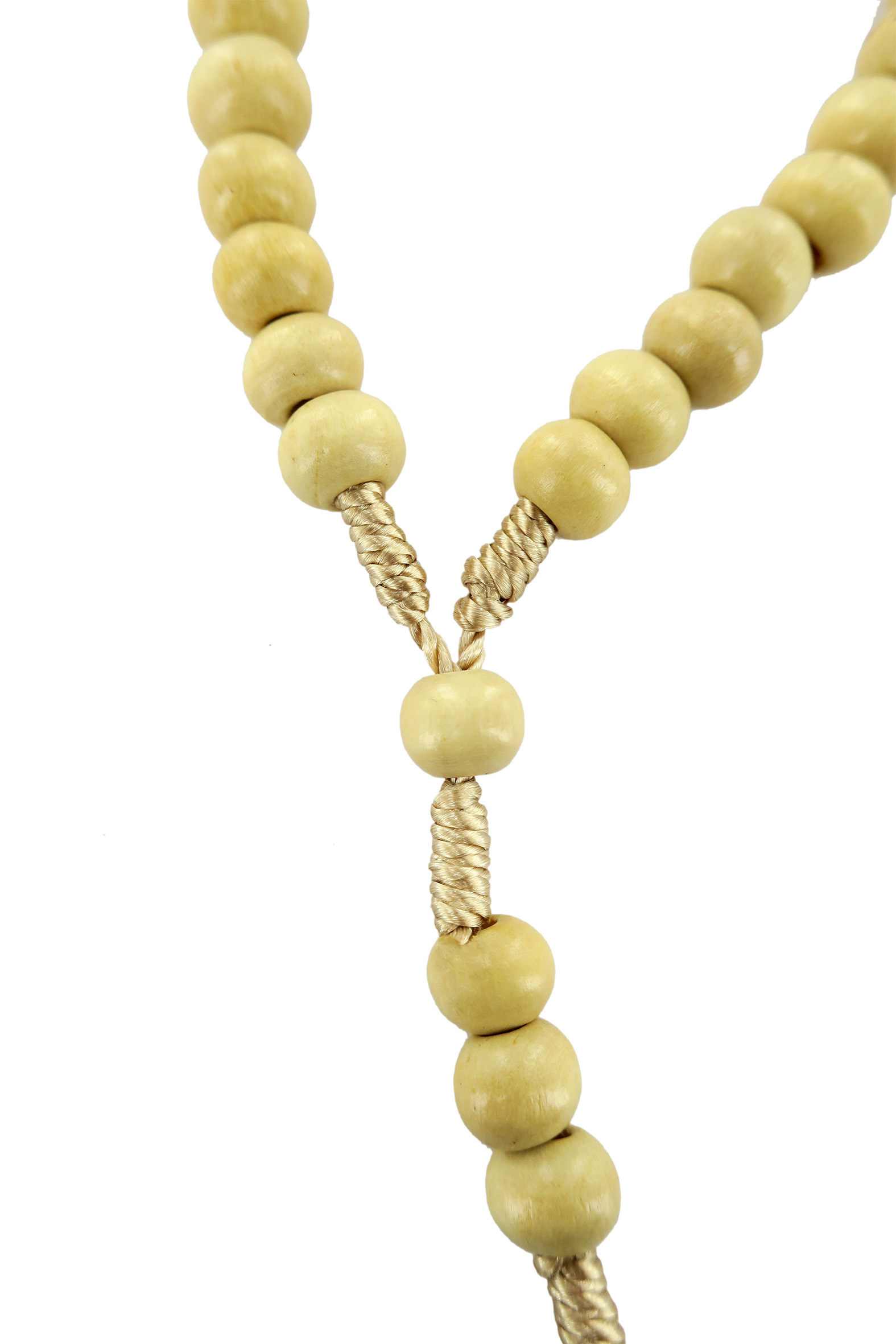 Rosario in legno tondo con diametro 6 mm. con legatura in seta - grezzo