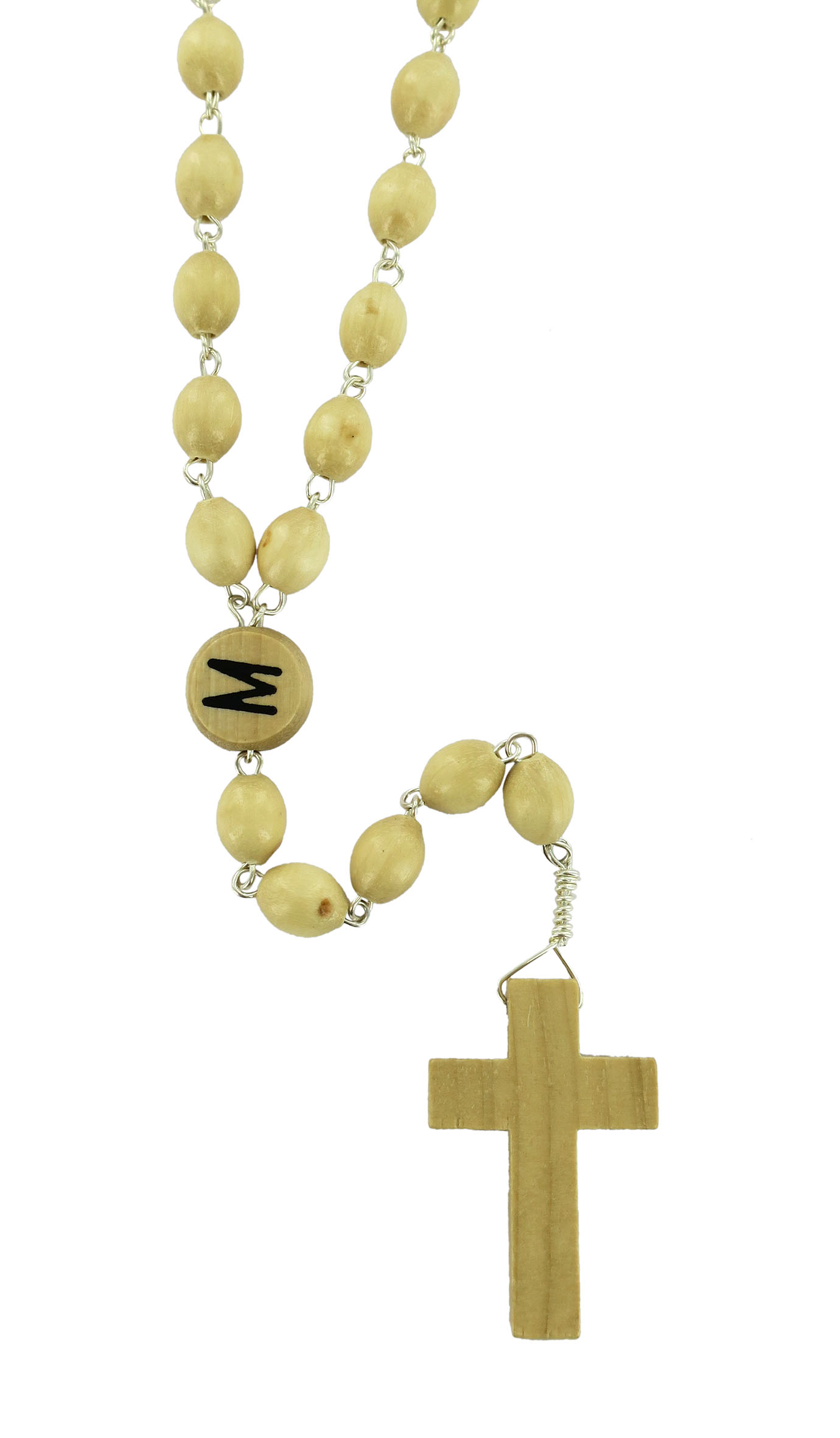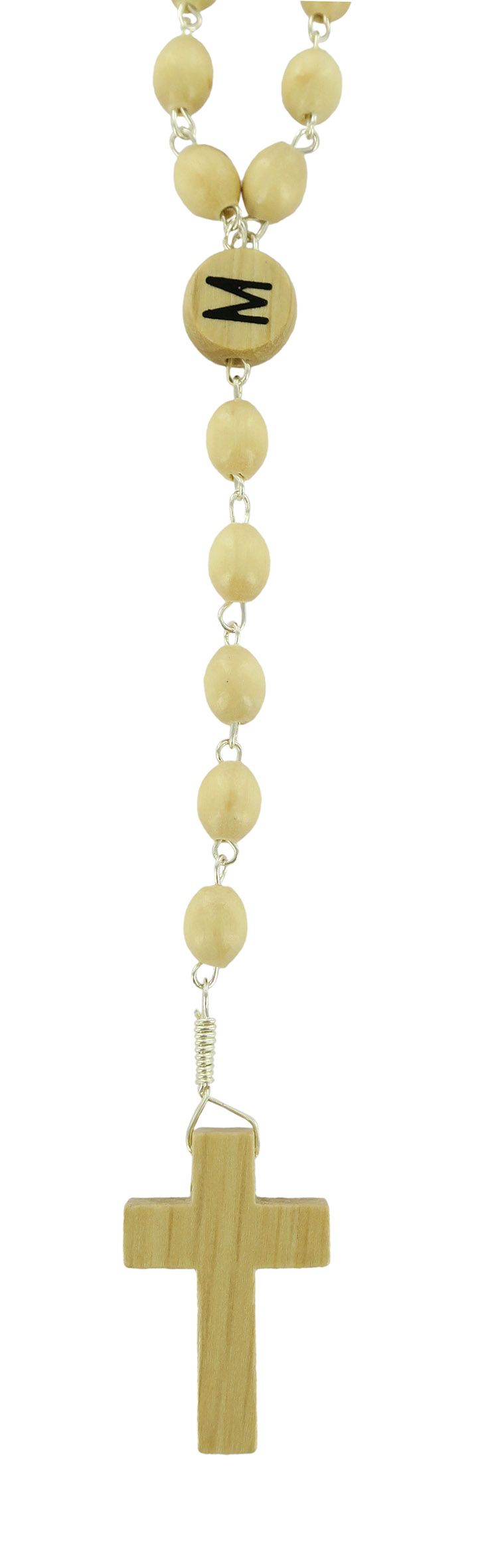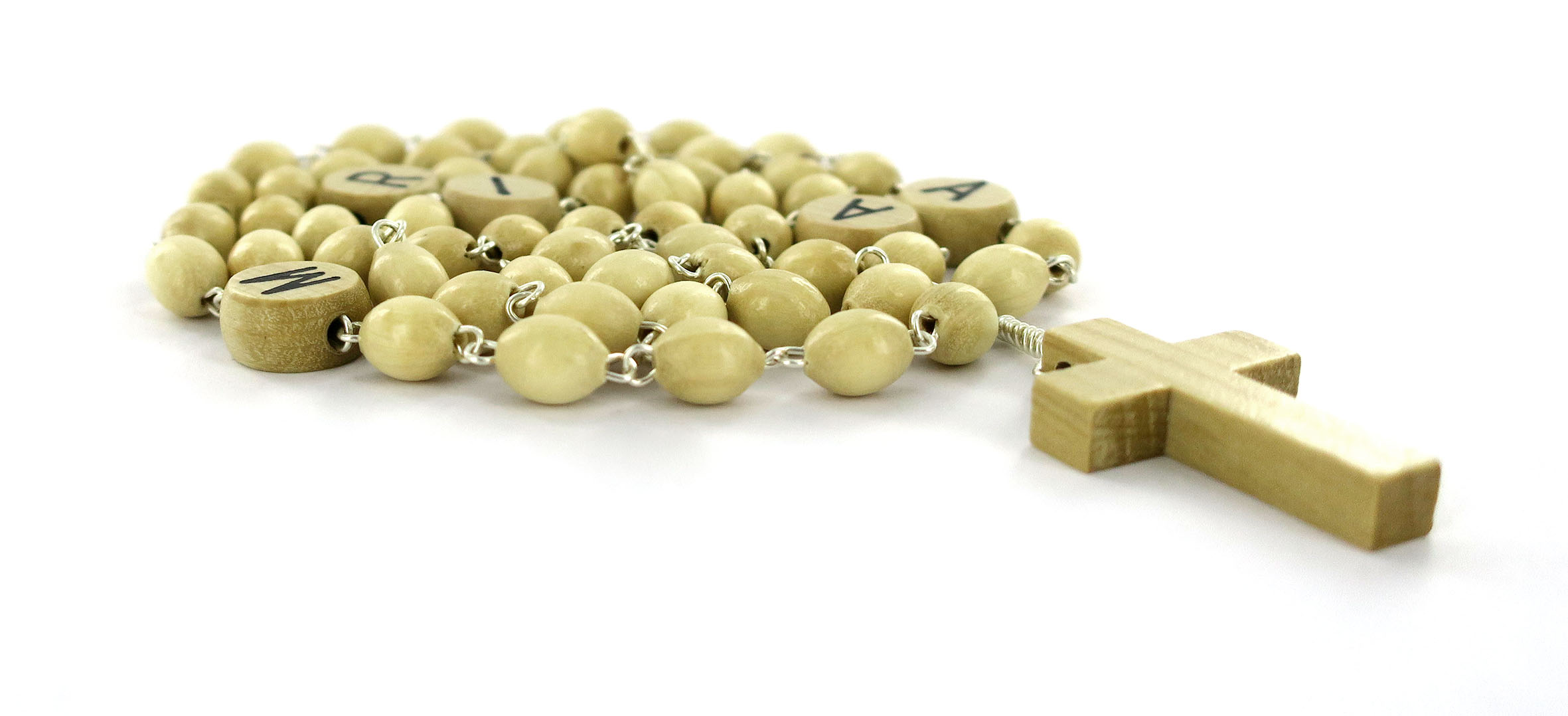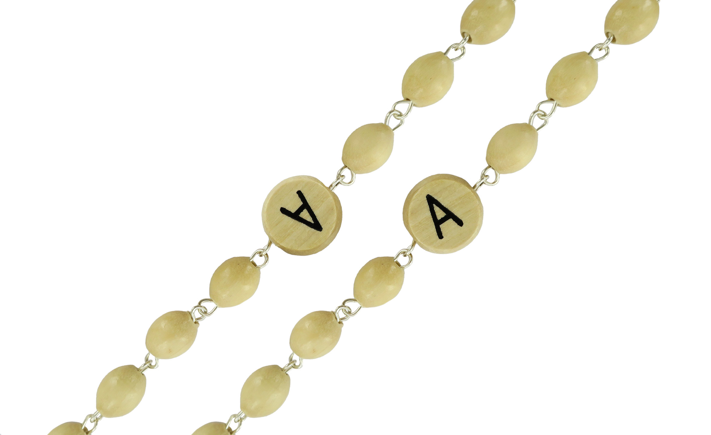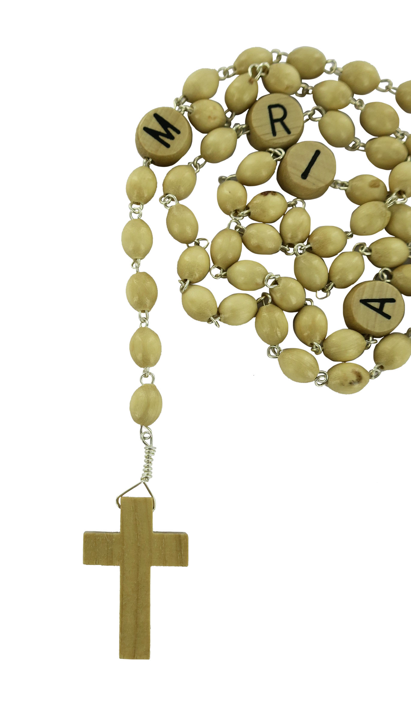 La particolarità di questo rosario è rappresentata dai pater e dalla crociera realizzati con grani in legno tondo schiacciato di mm 10, su ognuno di essi vi è stampata una lettera in modo tale da comporre il nome di "Maria".