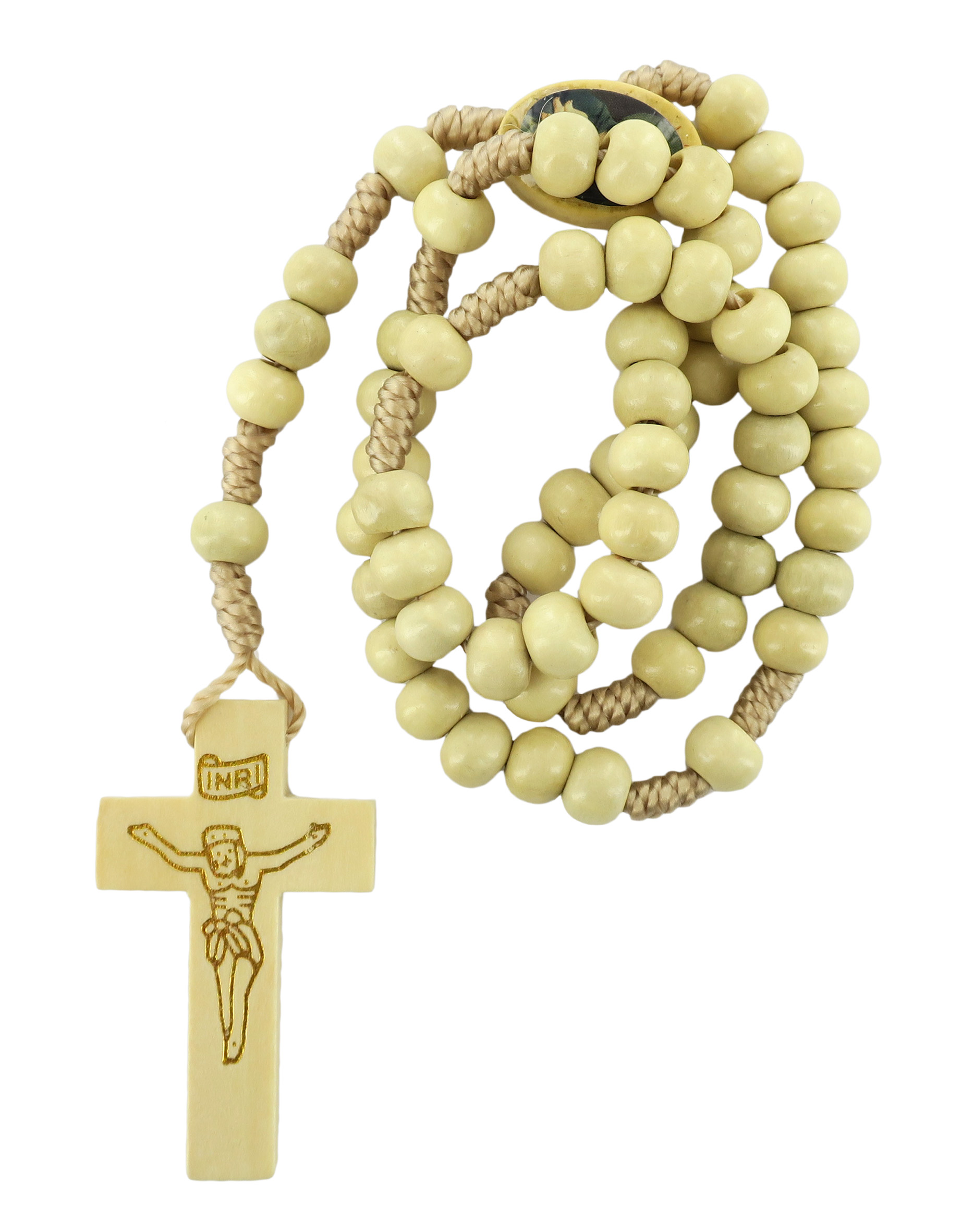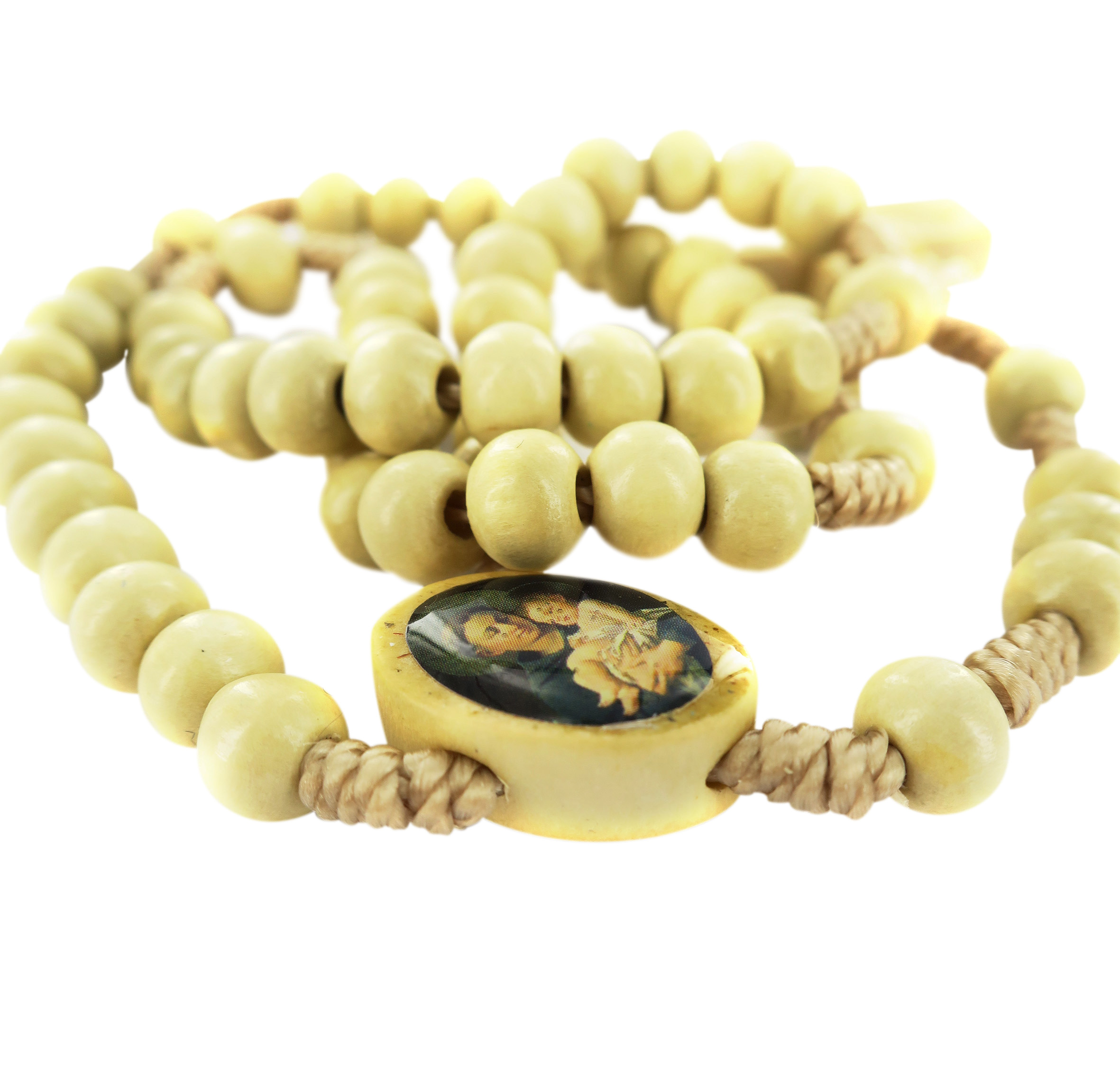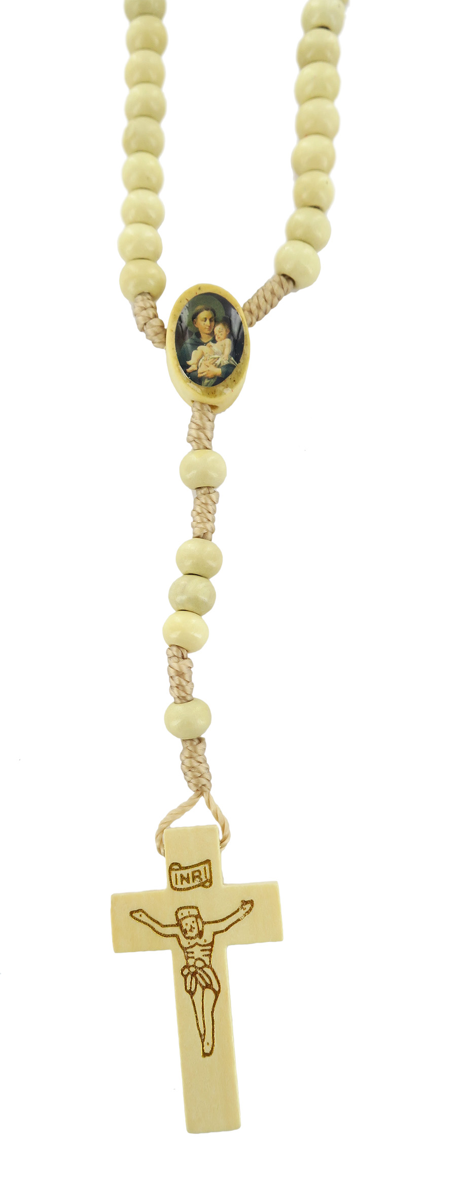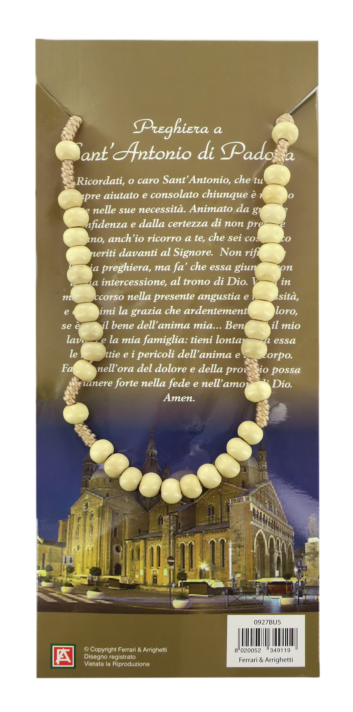 Rosario Sant Antonio con grani in legno mm 5 legatura seta con busta trasparente