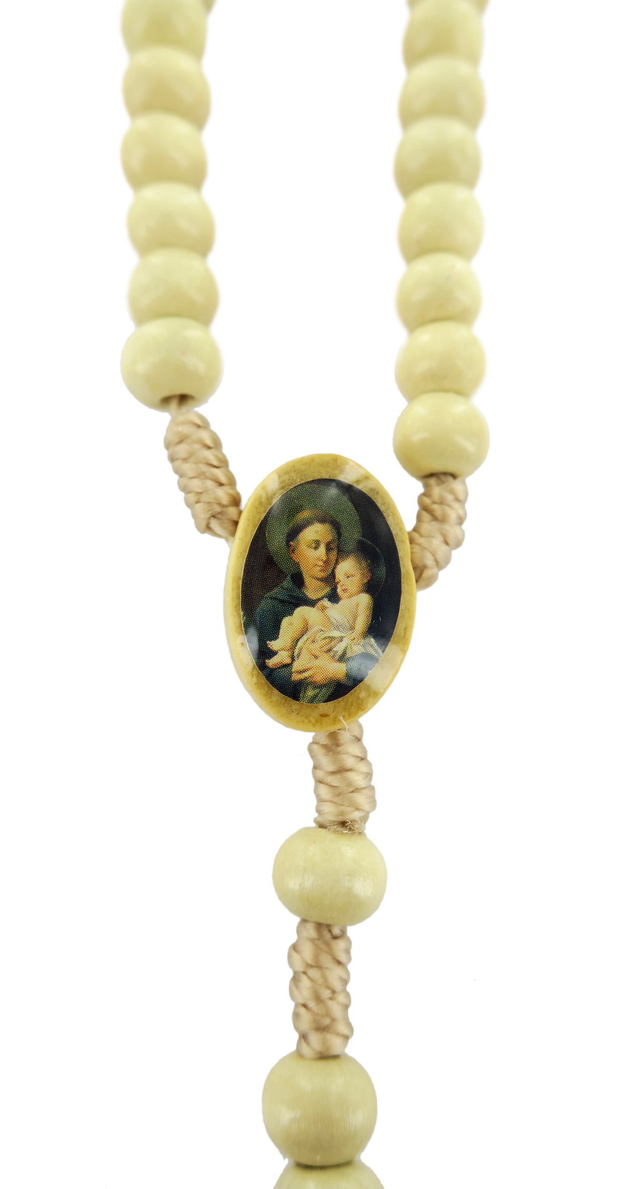 Rosario Sant'Antonio con grani in legno mm 5 legatura seta con busta trasparente