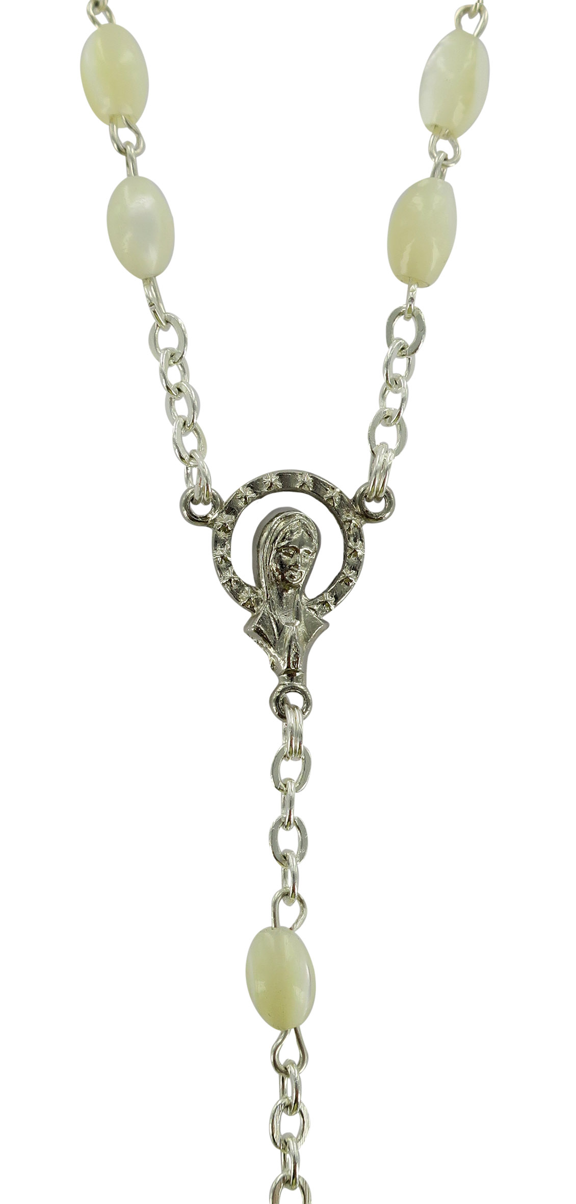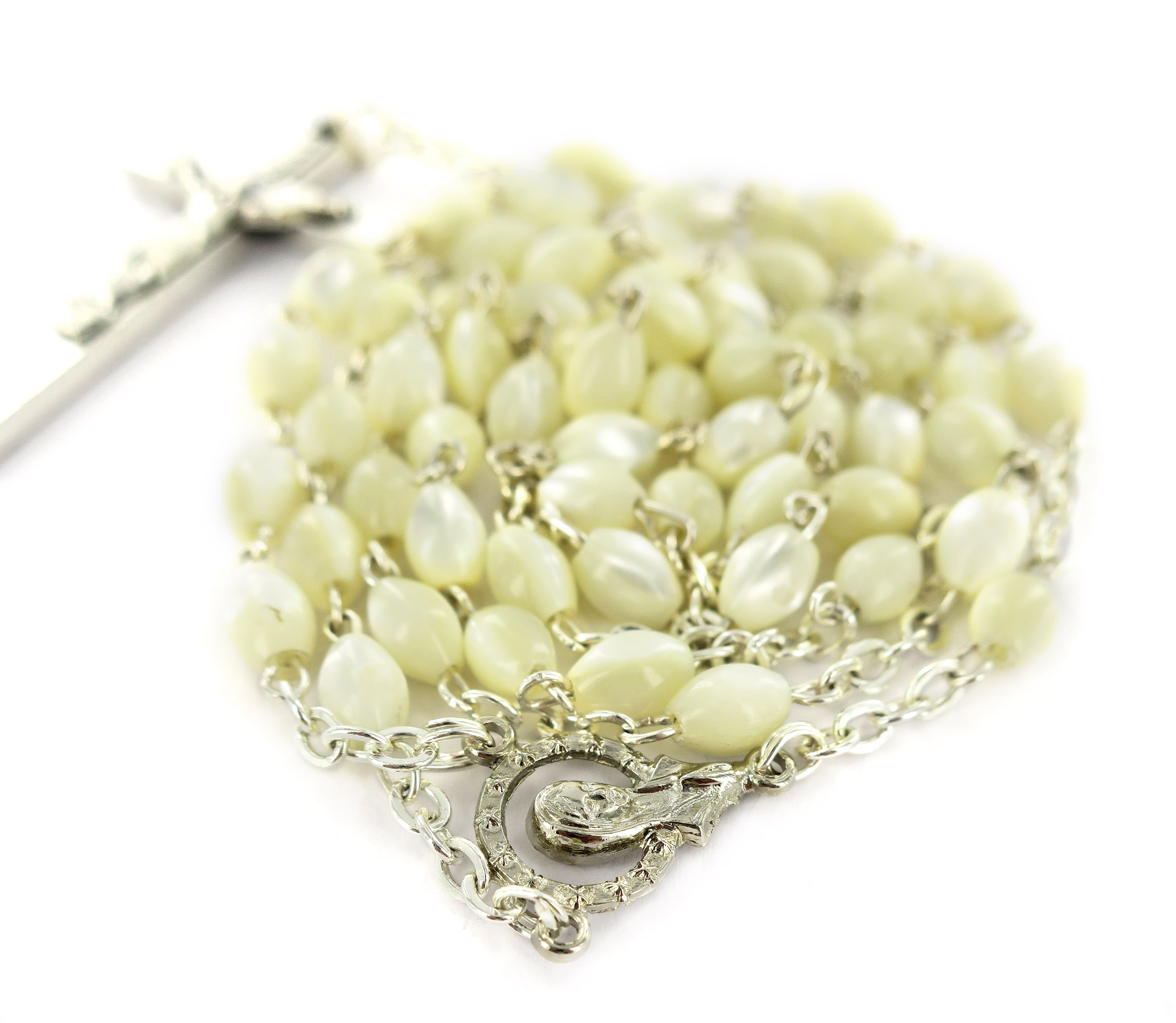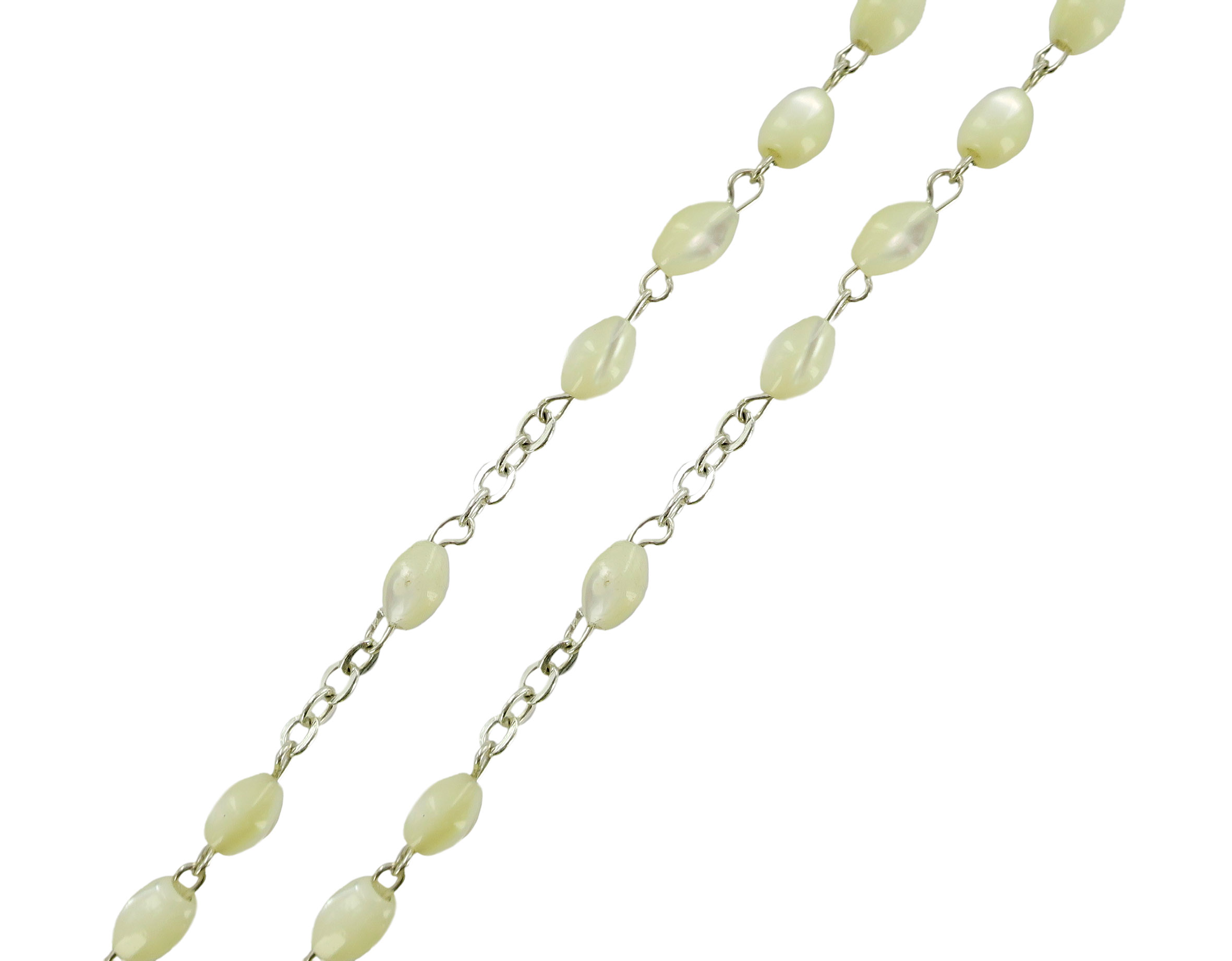 Rosario vera madreperla ovale mm. 4 legatura ottone argentato