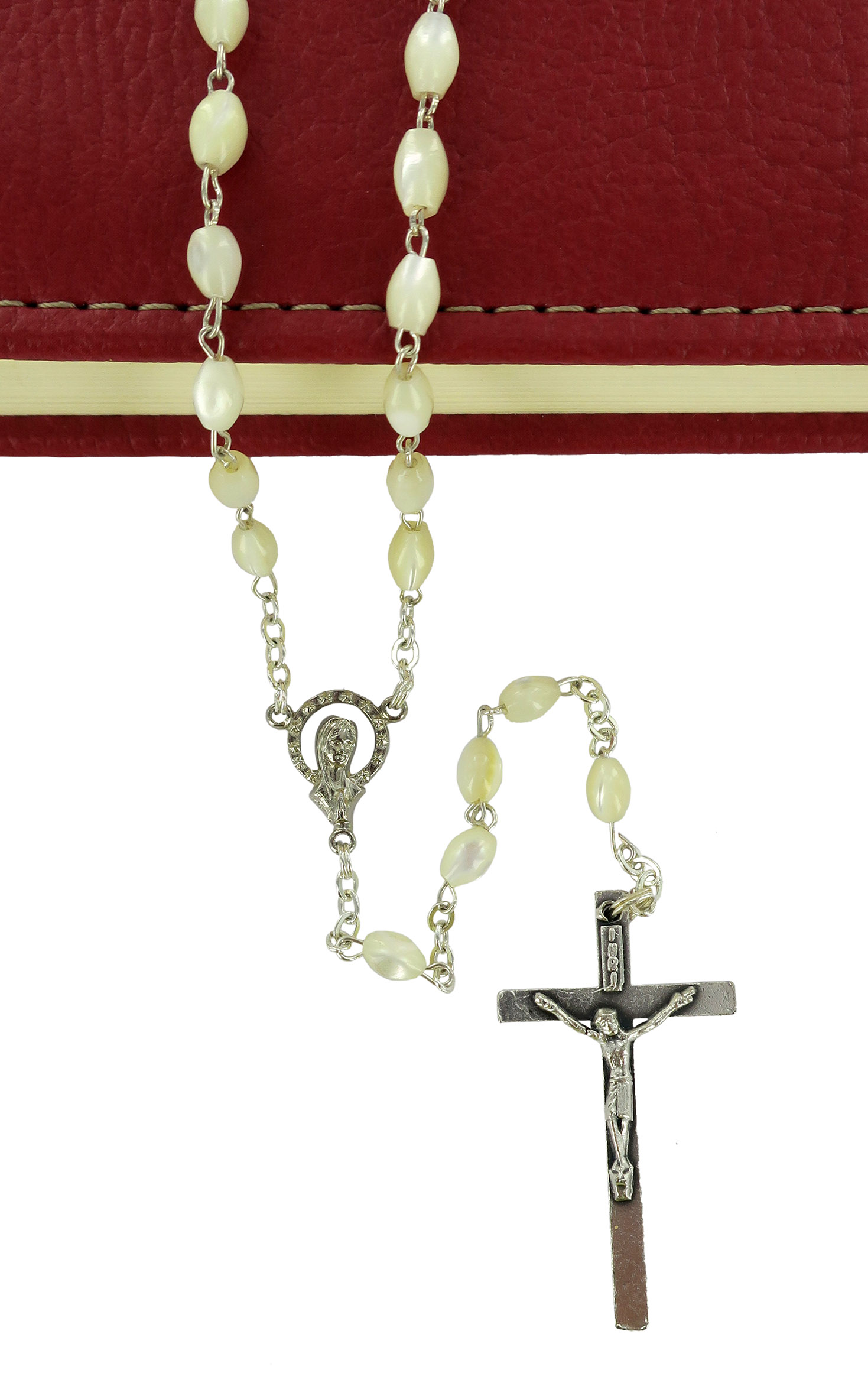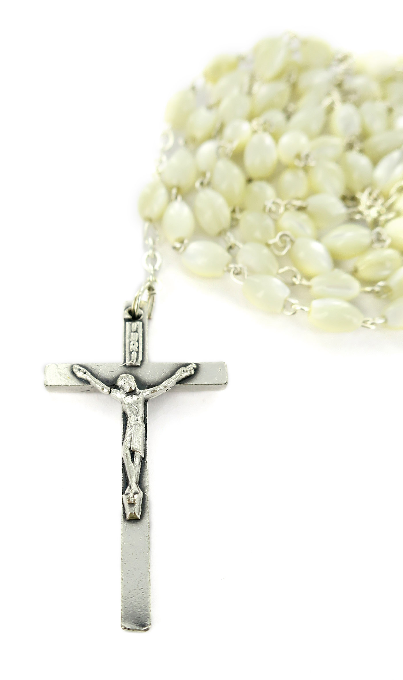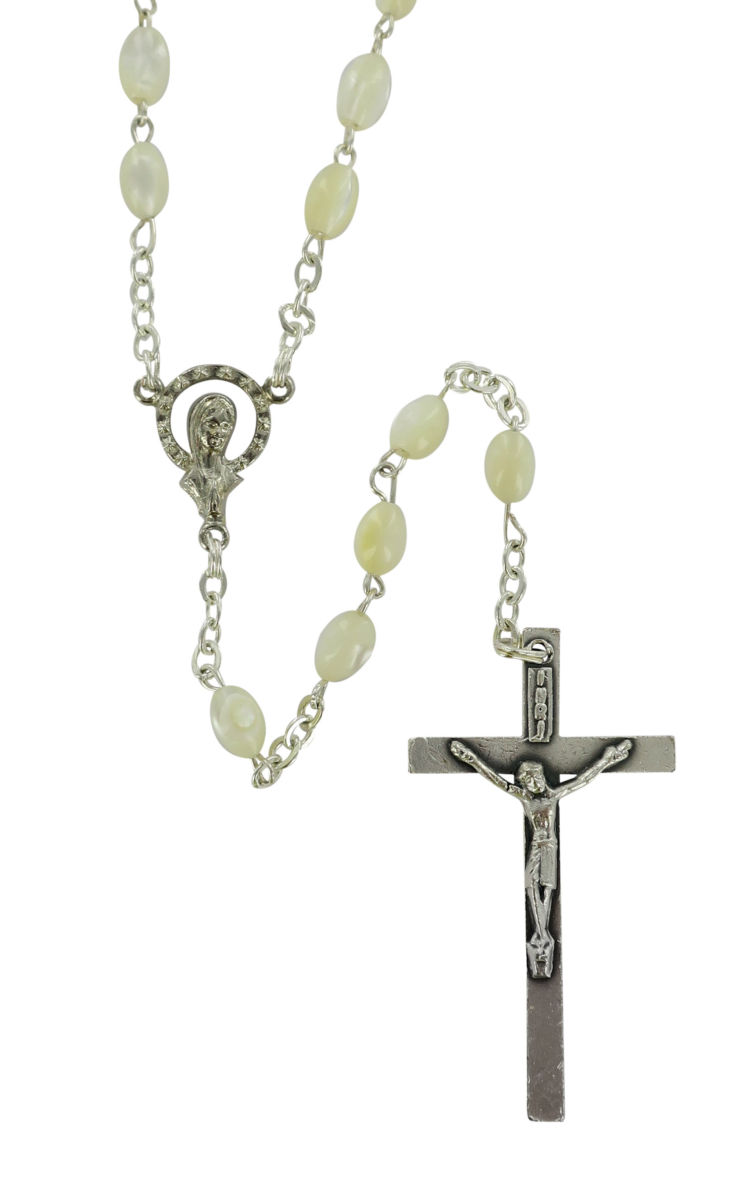 Rosario vera madreperla ovale mm. 4 legatura ottone argentato