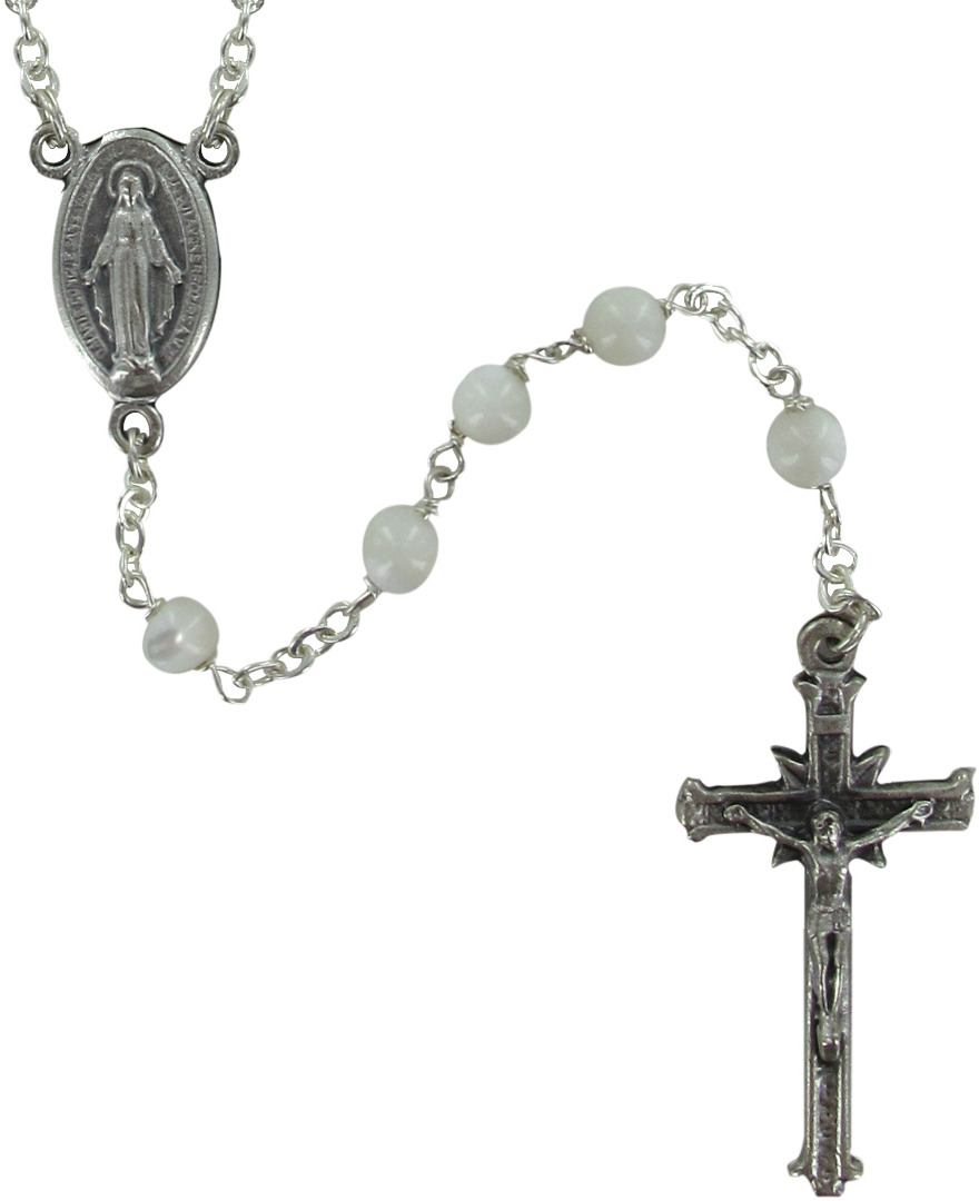 Rosario vera madreperla tonda mm 5 legatura a girello ottone argentato