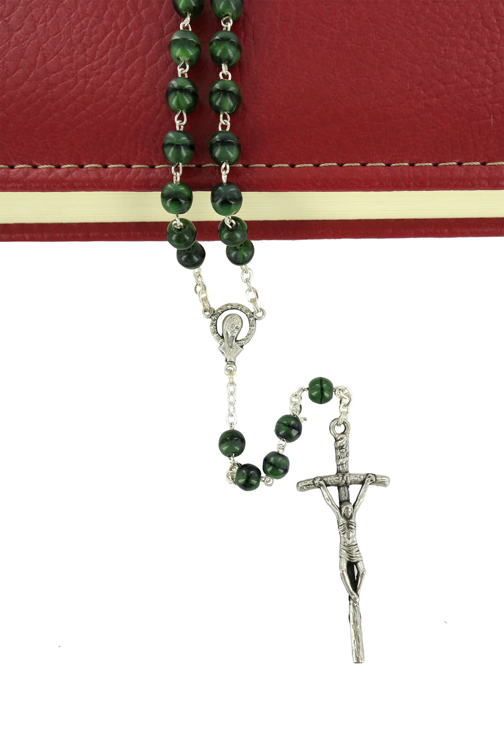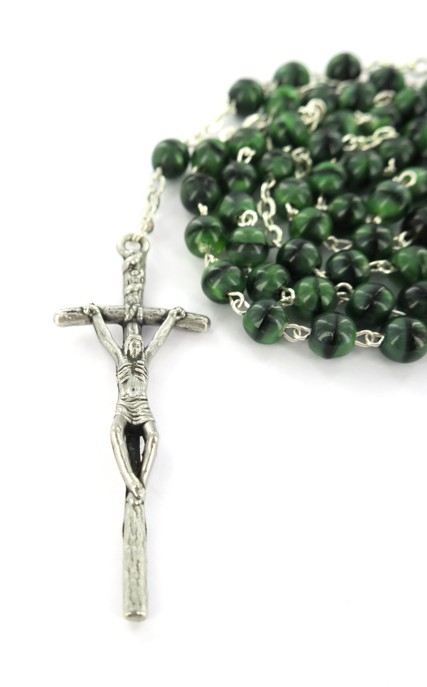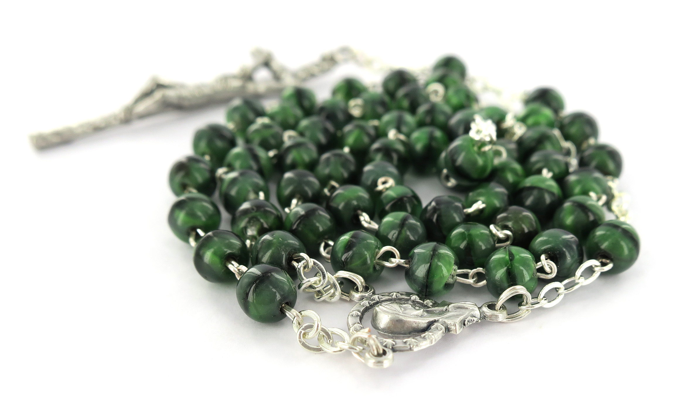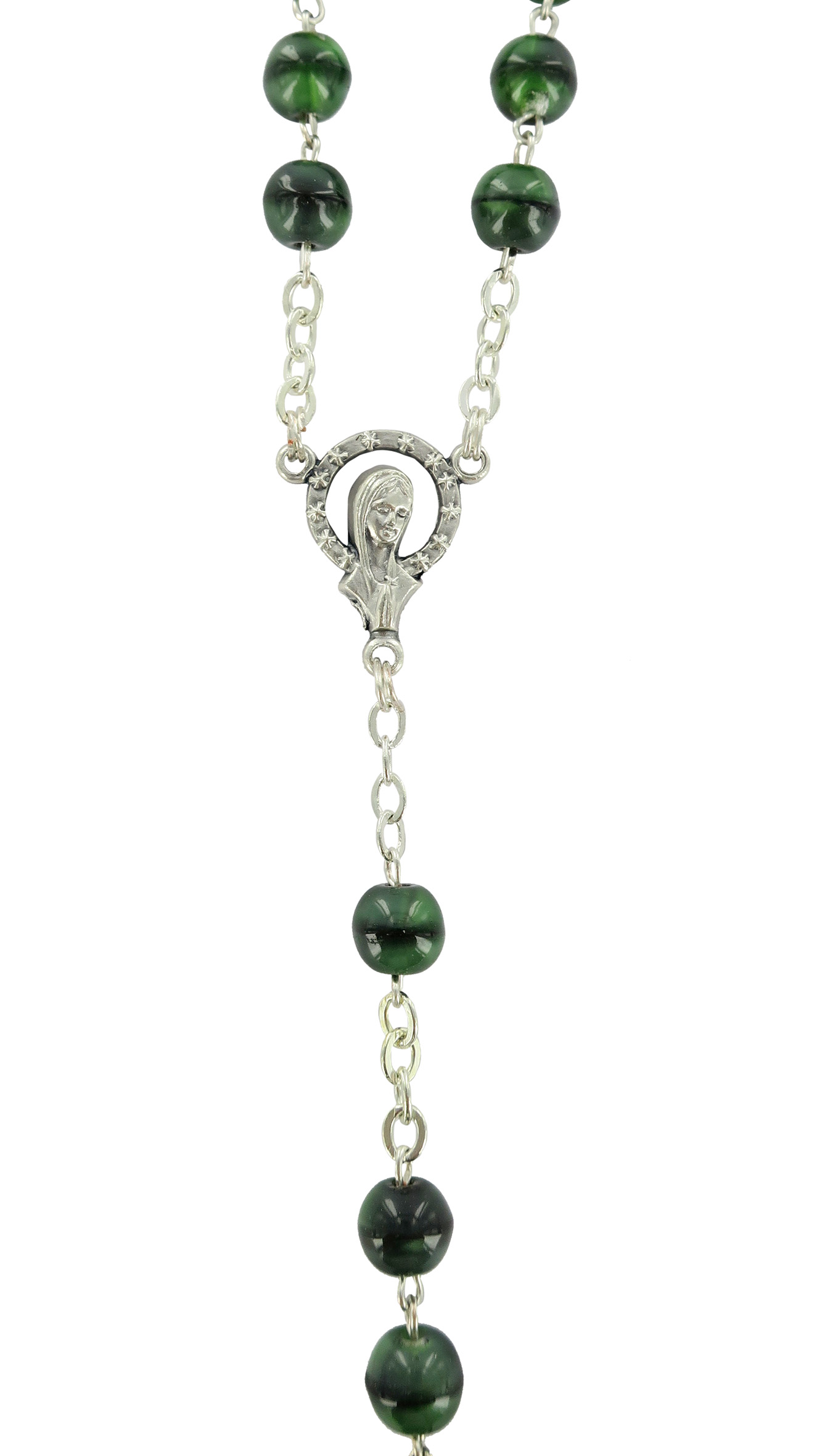 Rosario imitazione malachite mm 5 legatura a mano in ottone argentato
