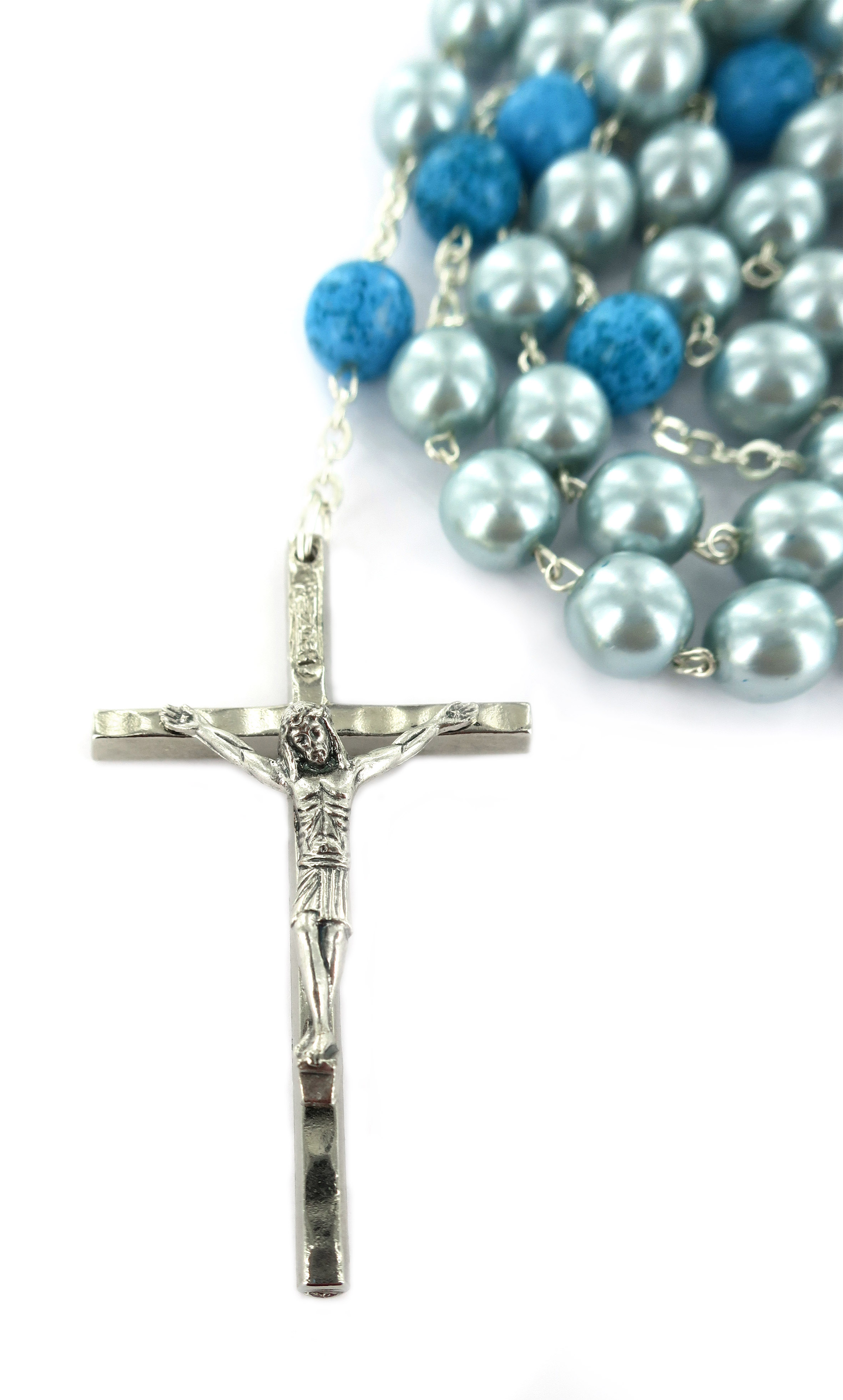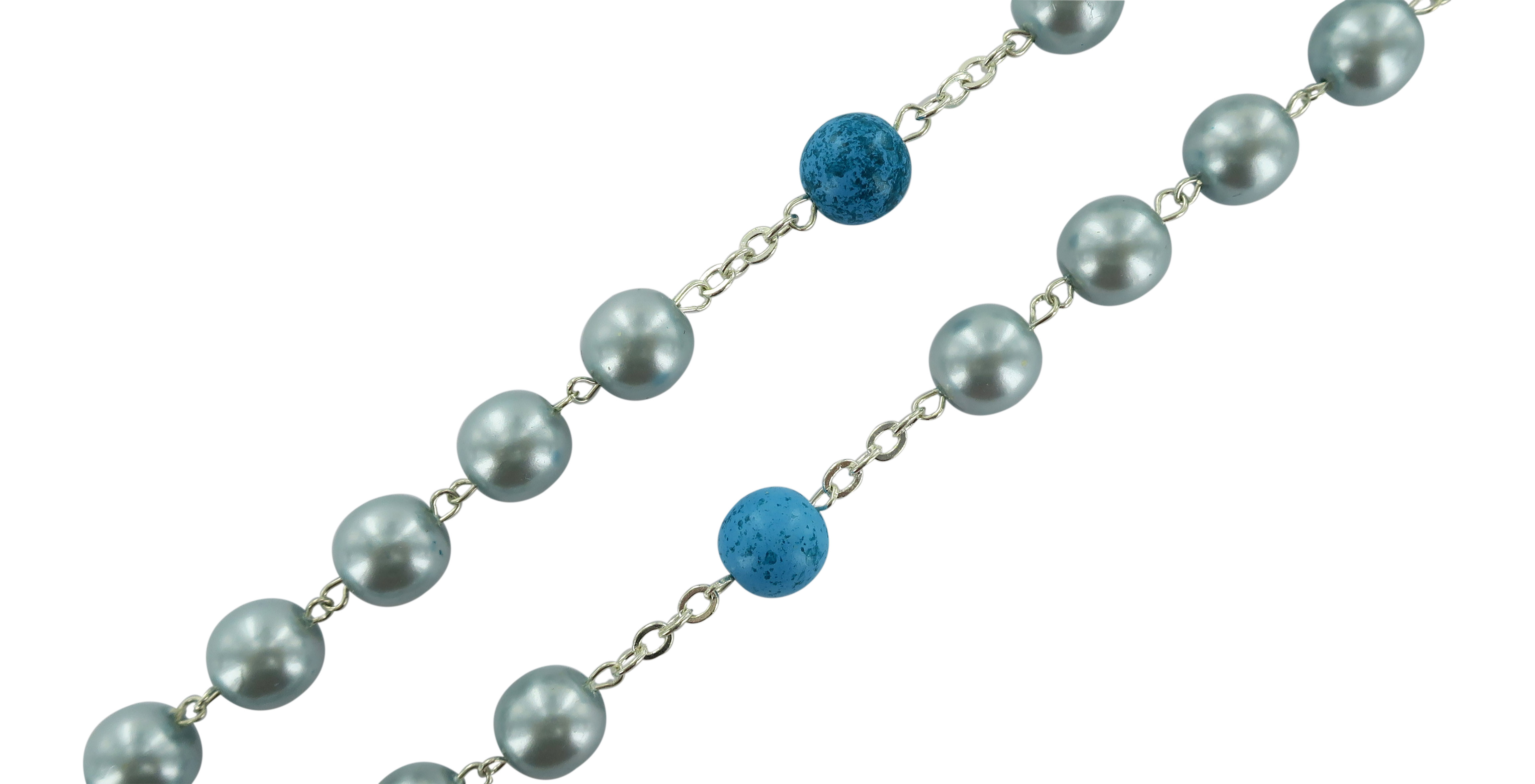 Rosario imitazione perla vetro azzurro Pater pietra dura