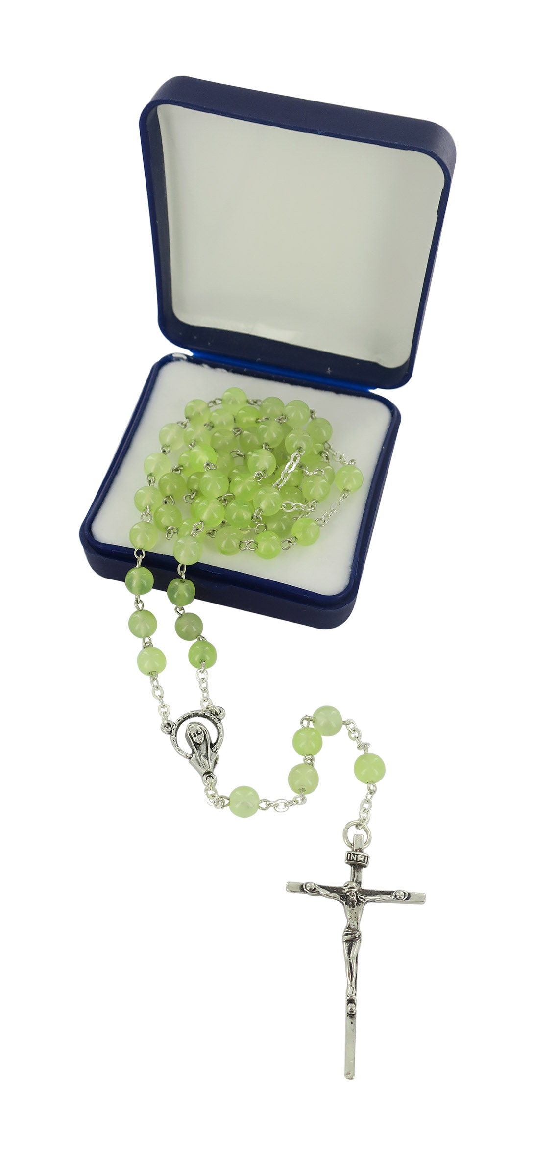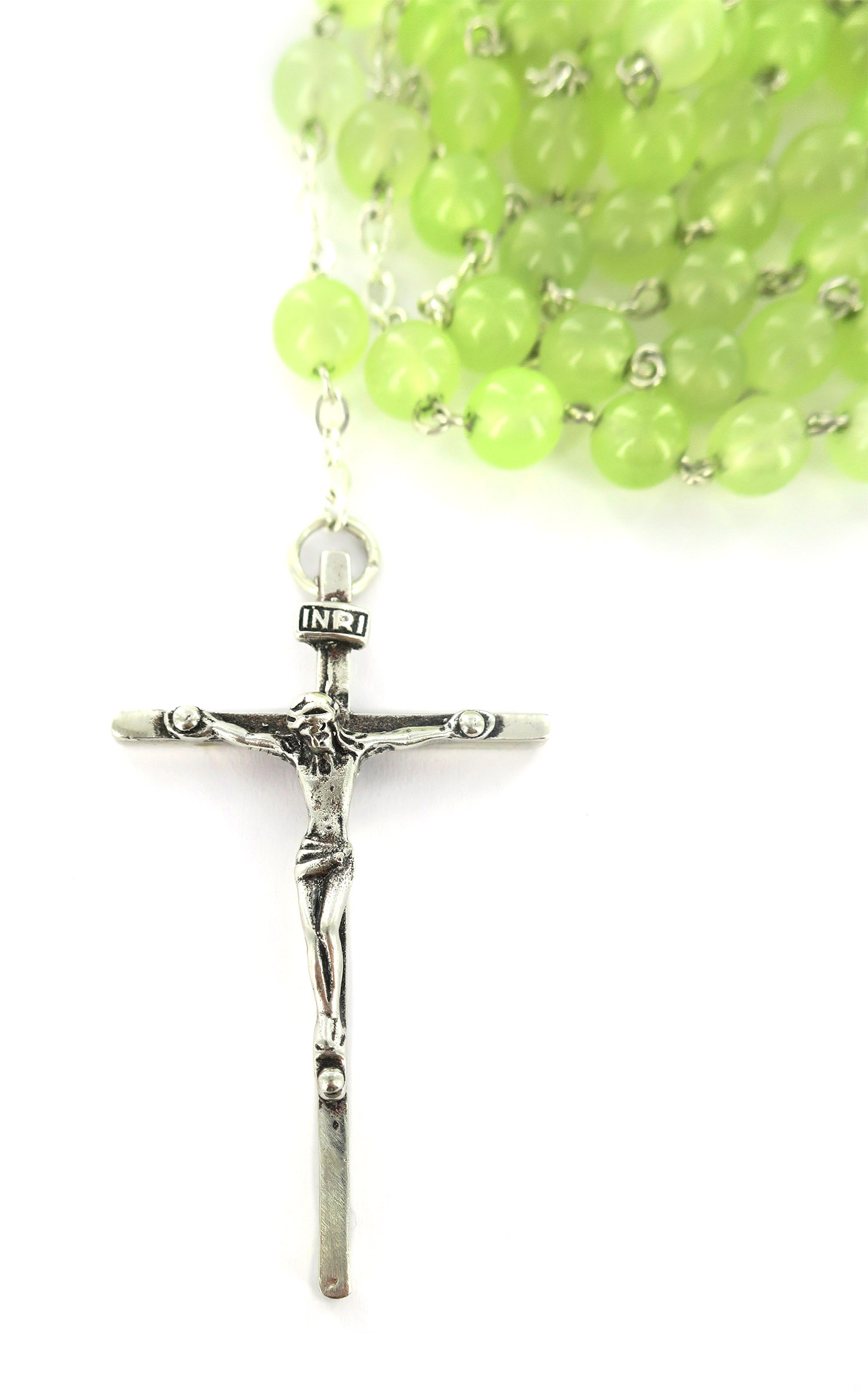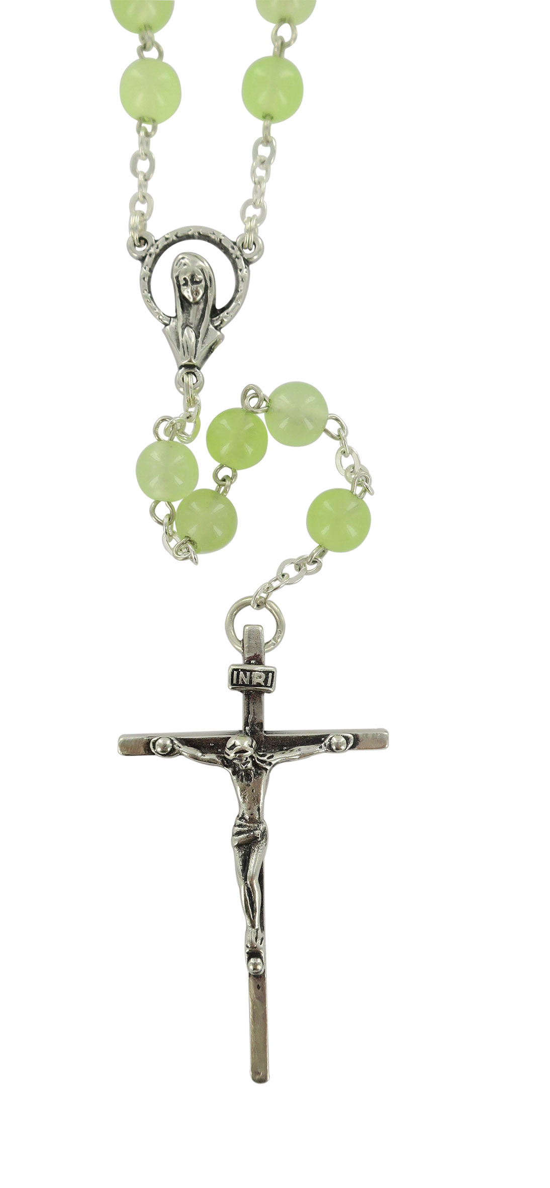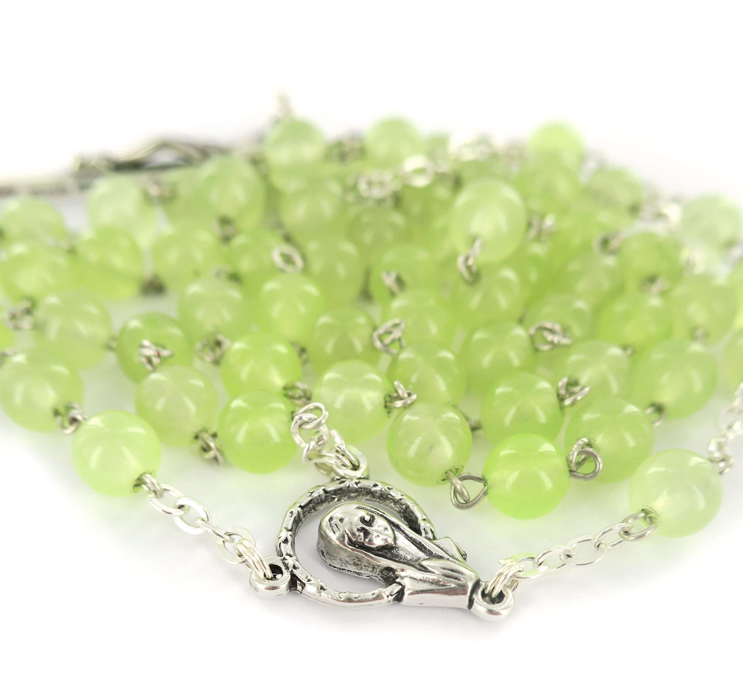 Rosario in argento con grani tondi in giada da Ø 6 mm